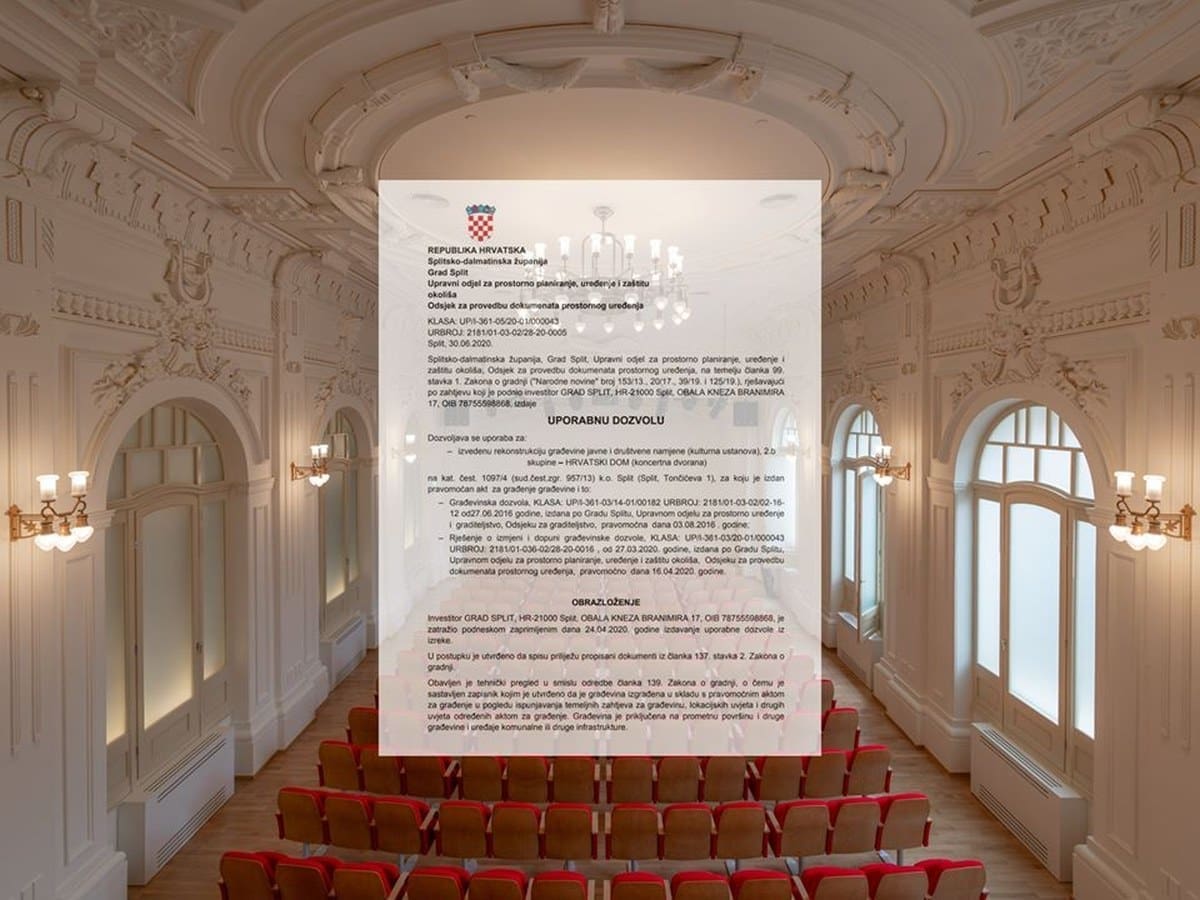 Zgrada Hrvatskog doma u Tončićevoj ulici, na kojoj je cjelovita obnova završena u ožujka, dobila je uporabnu dozvolu, priopćili su iz Grada Splita. Tehnički pregled, s obzirom na situaciju i propisane mjere opreza koje su zbog COVID-19-a bile aktualne, obavljao se u daljinskoj komunikaciji.