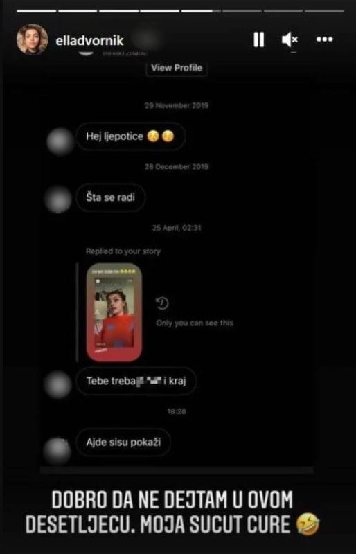Ella Dvornik je na Instagram Storyju podijelila vulgarne poruke koje je dobila od jednog muškarca.