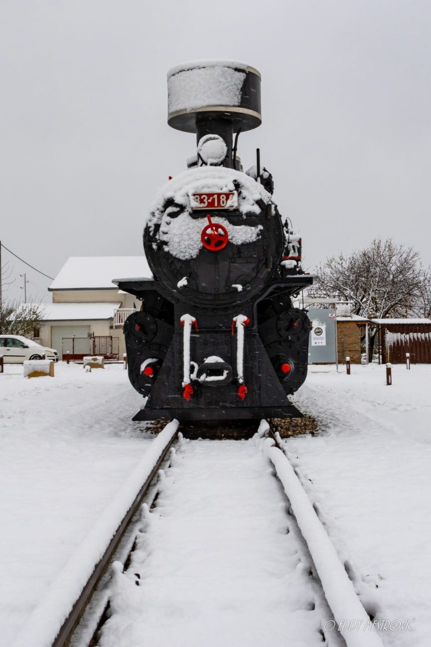 Kako je naveo autor fotografija i video zapisa Eddy Meštrović, snimanje lokomotive u snijegu dobilo je i simboličan naziv – "Vlak u snijegu". Naslov je izravna posveta jednom od najpoznatijih hrvatskih dječjih filmova, koji generacijama ima posebno mjesto u kolektivnom sjećanju. Film "Vlak u snijegu" priča je o školskoj ekskurziji koja se, na povratku kući, pretvara u borbu s prirodom: parna lokomotiva zapne u snježnoj mećavi, a djeca su prisiljena snaći se i zajednički preživjeti tešku situaciju. U finalu, upravo njihova domišljatost i složnost donose rješenje – koriste kartonske poslužavnike kako bi oslobodili vlak i vratili se u svoje selo.