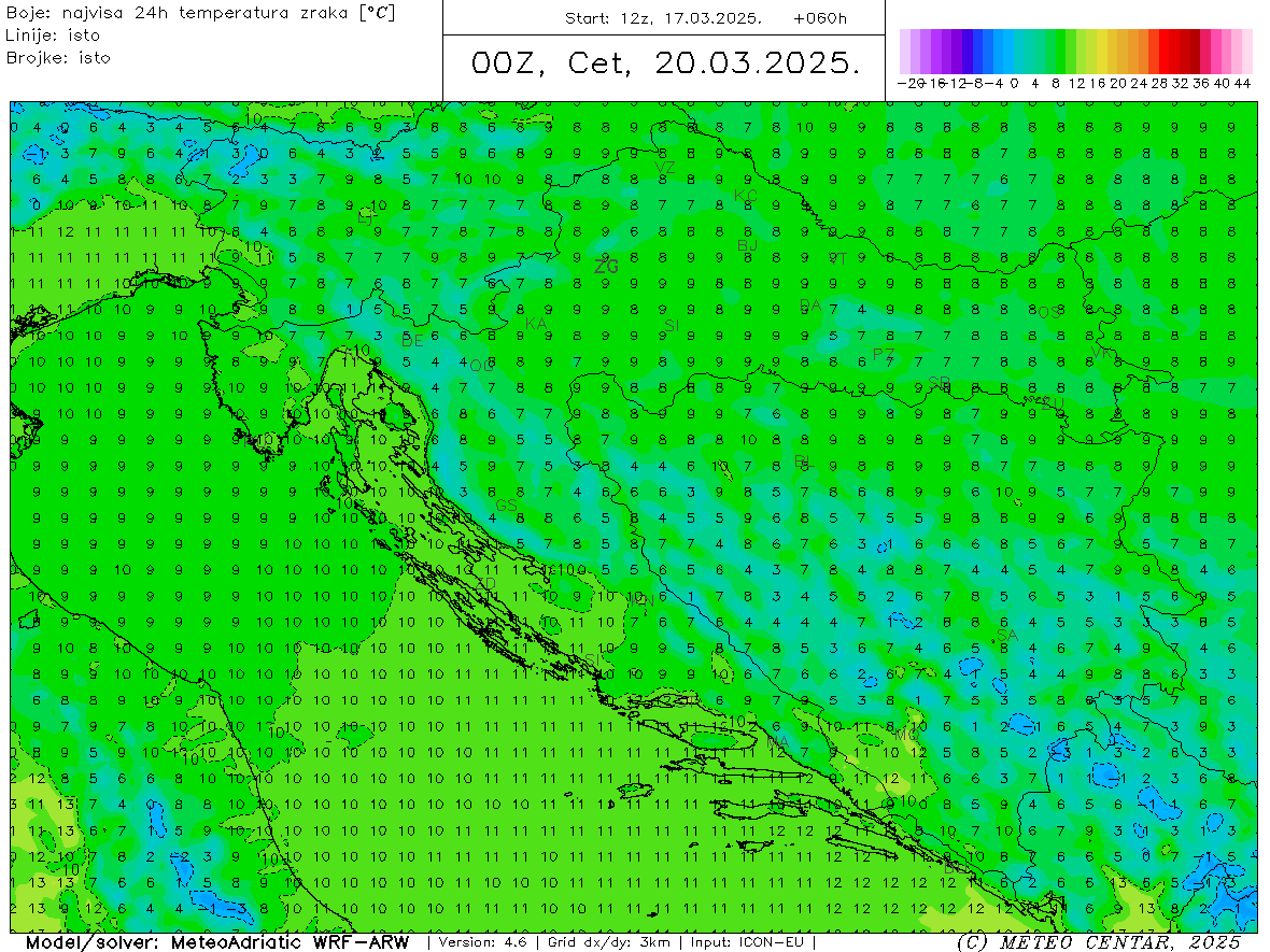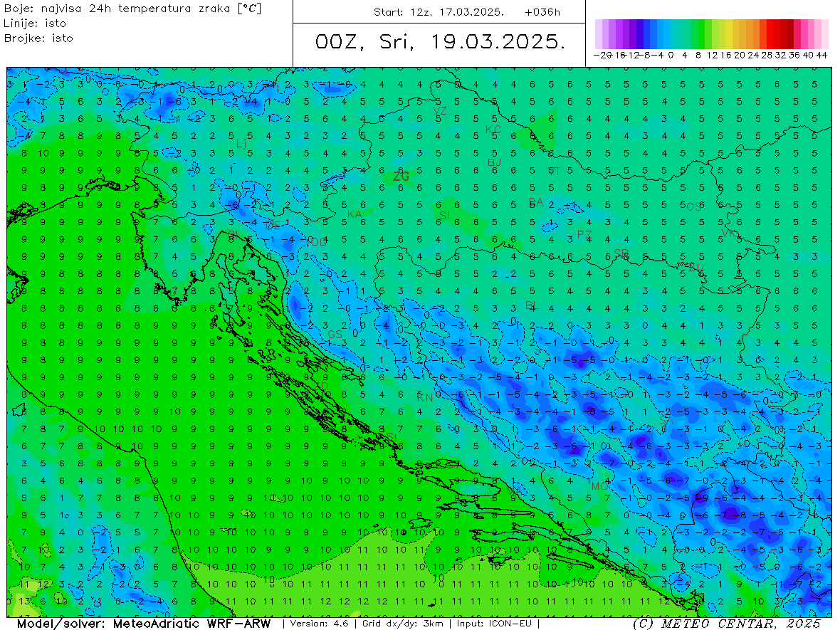 Očekivane minimalne temperature zraka (MeteoAdriatic)