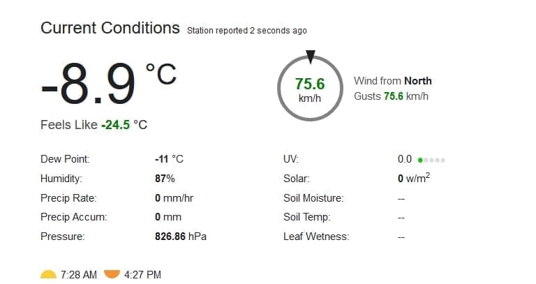 U 19 sati Sveti Jure na Biokovu najhladnija je postaja u državi s -10°C. Na Velikoj Duvjakuši na Dinari je -9°C, ali uz olujnu buru osjet hladnoće trenutno iznosi čak -25°C.