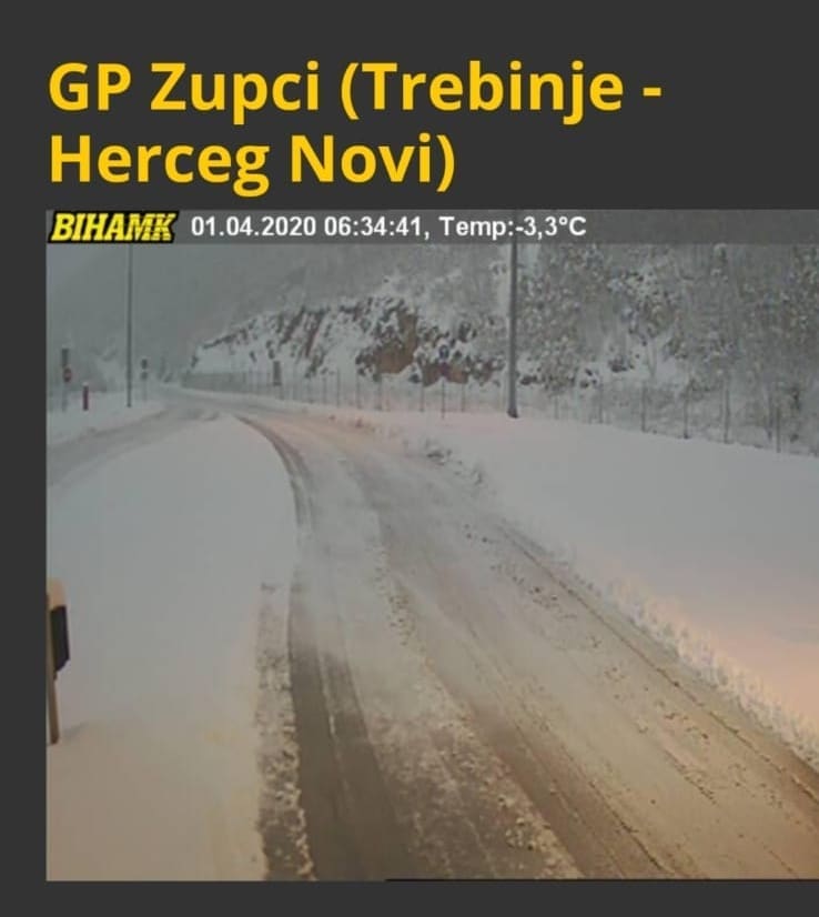 Jutros je u cijeloj zemlji vedro, osim na dubrovačkom području gdje ima kiše i snijega. Uz obalu uglavnom padaju kiša i susnježica, ali se zabijelio dio Konavala. Konavoska brda imaju oko 5 centimetara snijega, viša područja do 8 centimetara. Granični prijelaz Zupci kod Herceg Novog mjeri oko 20 centimetara snijega!