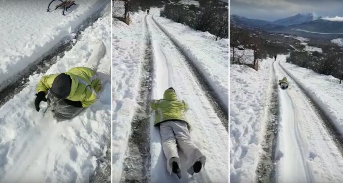 Tata Ante Jurić je svog desetogodišnjeg sina Luku naučio kako se nekad klizalo po snijegu. Prisjetio se vremena kada nije bilo skupih skija i sanjki. U plastičnu vreću ubacio je slamu, sve dobro zavezao, potražio dobru nizbrdica i eto gušta...