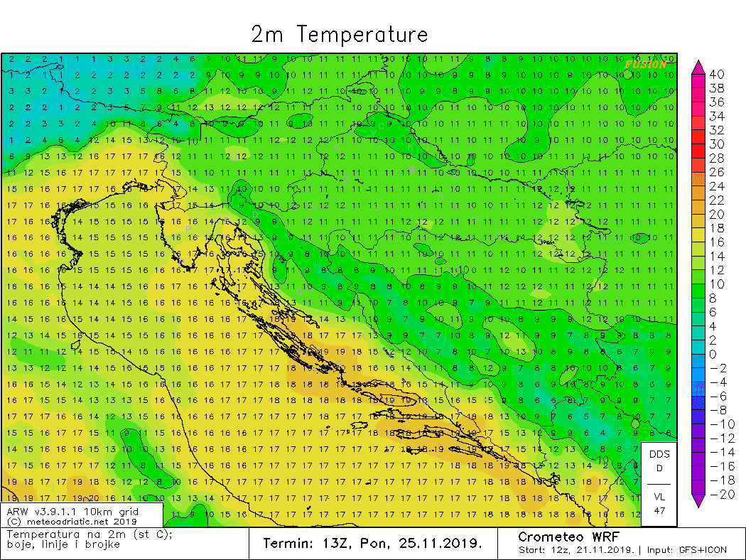 Ako čekate sunčan dan u cijelosti, dočekat ćete ga u ponedjeljak. Osim toga, puhat će slaba do umjerena bura koja će uspjeti sasušiti silnu vlagu iz zraka, a dodatno će zatopliti pa će dijelovi Dalmacije u ponedjeljak mjeriti preko 20 Celzijevih stupnjeva. Prilično je vjerojatno da će u nedjelju i ponedjeljak diljem Dalmacije padati dnevni temperaturni rekordi za studeni!