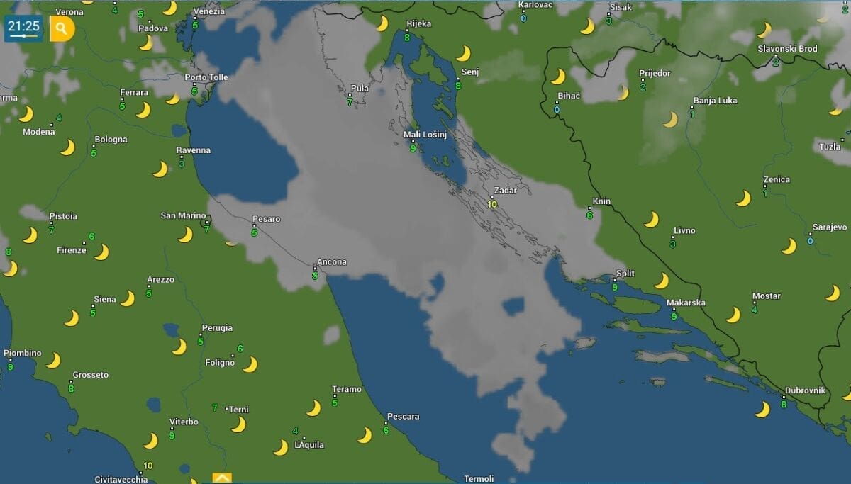 Prema prognozi PMC-a Split, magla je moguća na dijelu sjevernog i srednjeg Jadrana sutra i sljedećih dana.