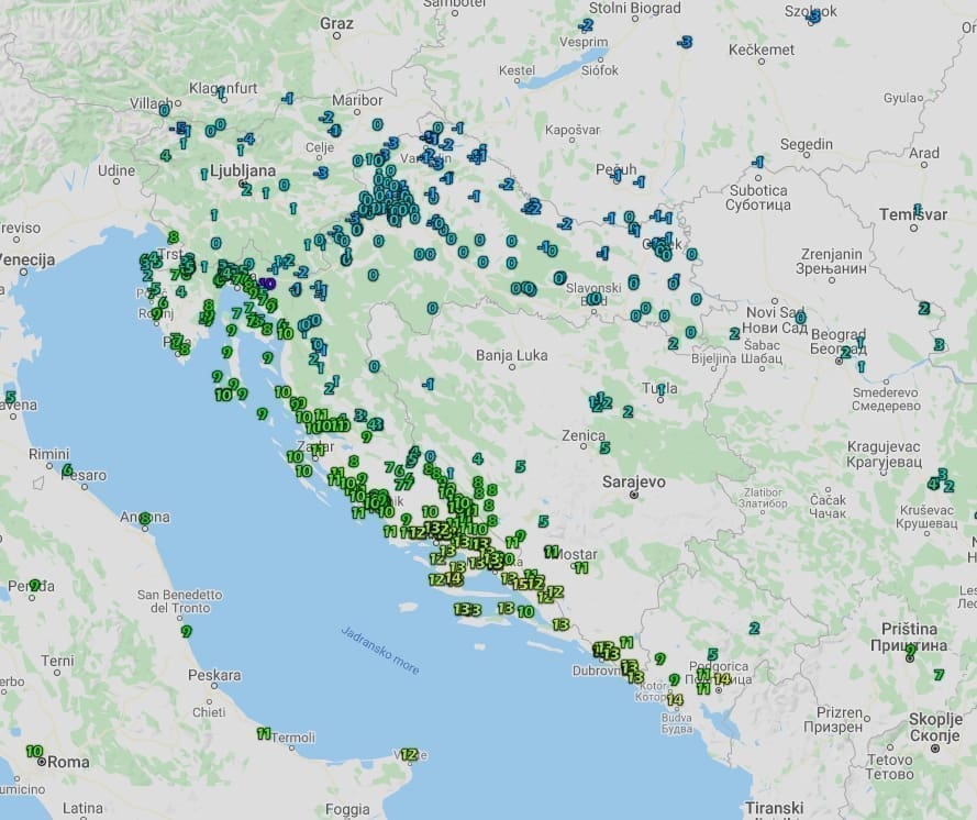 Dok na Jadranu, a osobito u Dalmaciji vlada natprosječna toplina, znatno hladnije je u unutrašnjosti zemlje.