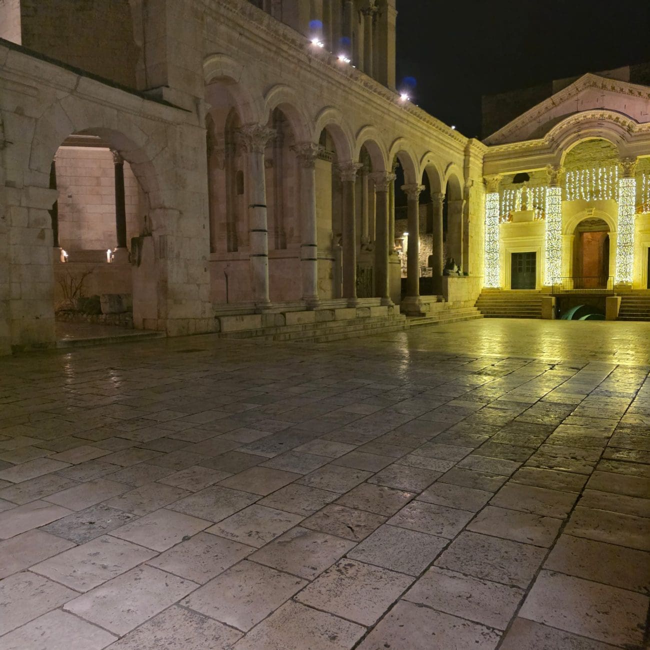 Bez gužvi i buke, centar Splita otkriva svoju drugu, smireniju stranu. Dioklecijanova palača i okolne ulice djeluju monumentalnije nego ikad, dok tišina večeri daje prostoru posebnu, gotovo filmsku atmosferu. Zimske večeri vraćaju gradu sporiji ritam, u kojem se svaki detalj – fasade, svjetla i prazni prolazi – doživljava intenzivnije.