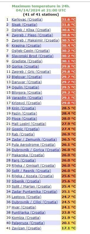 Kartu nekih od rekorda možete pogledati u nastavku, kao i najviše dnevne temperature koje su zabilježen u nedjelju u Hrvatskoj.