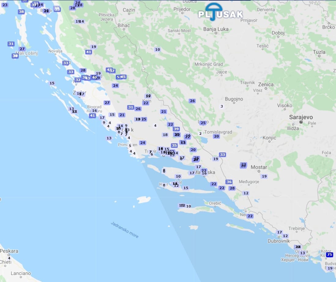 Prvi u nizu ciklonalnih centar premješta se s područja Italije nad Jadran što donosi oblačno vrijeme uz čestu kišu. Prema podacima mreže postaja Pljusak.com, do 16 sati najviše kiše je palo u Ražancu, 40 litara po kvadratnom metru. U Hrvacama je palo 37 litara, a slijede Starigrad Paklenica 36, Pašman 35, Dugopolje 33, Pag 32, Vrgorac 31, Kistanje 30 itd.