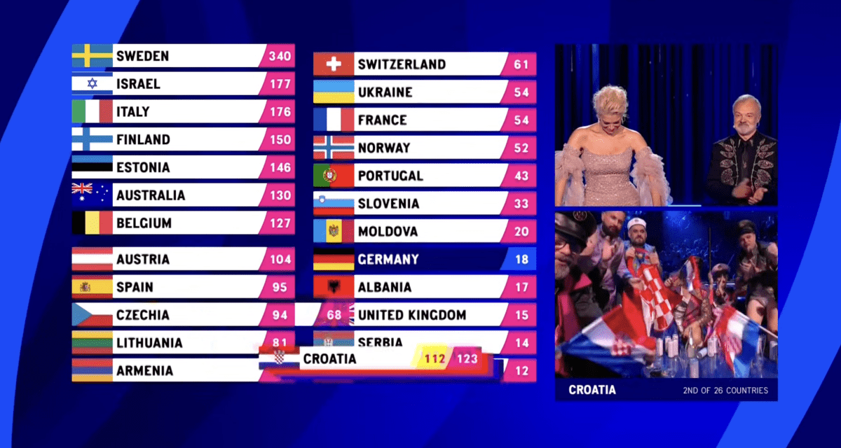 Podijeli Facebook Twitter Telegram WhatsApp E-mail adresa Hrvatska je loše prošla u dijelu glasovanja gdje su glasovali nacionalni žiriji. Međutim, publika je Letu 3 dodijelila visokih 112 bodova, što čini ukupno 123 boda. Tako je Hrvatska završila na solidnom 13. mjestu! Moja reakcija na članak je... Ljubav 5 Haha 11 Nice 1 What? 0 Laž 2 Sad 3 Mad 2 Facebook Twitter Whatsapp Telegram