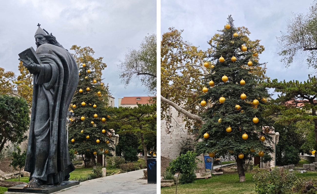 U sjeni stoljetne platane, pred zidovima koji pamte carstva i ljudske priče, živa jelka sada stoji kao tihi svjetionik topline. U prostoru gdje kamen šapuće povijest, a prolaznici zastanu i udahnu atmosferu starog Splita, Božić je stigao mekše nego inače – s više brige za okoliš i s naglaskom na ono što je već dio gradske duše.