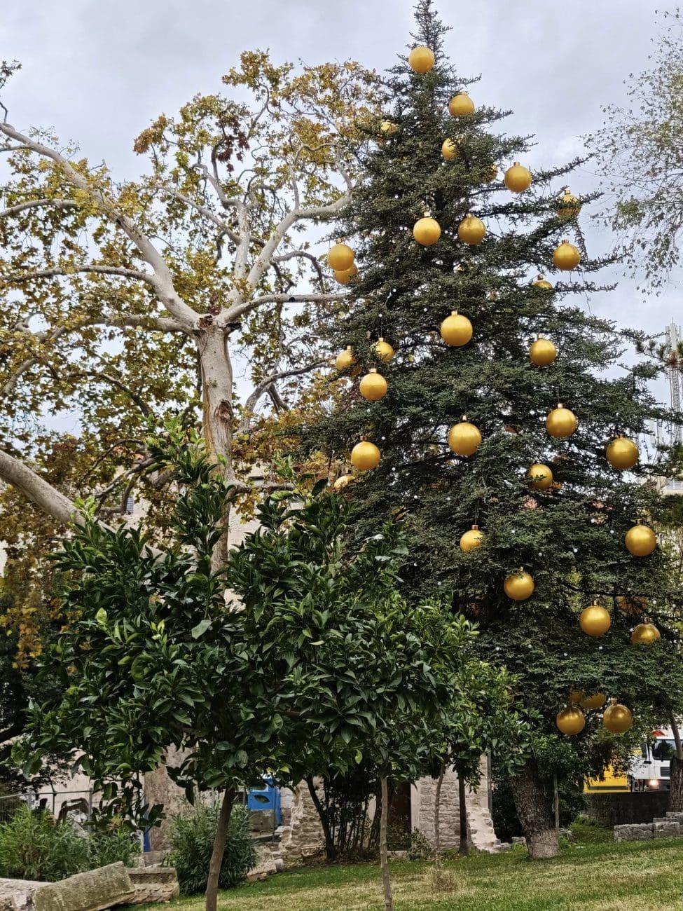 Okićena zlatnim kuglama koje se lagano njišu na buri, jelka se pretvorila u prigušeni izvor svjetla, diskretan, ali dojmljiv ukras povijesne jezgre Splita. “Malo blagdanske čarolije u srcu našeg grada”, poručuju iz Parkova i nasada, ističući kako je naglasak ove godine stavljen na sklad s prostorom i poštovanje prema prirodi.