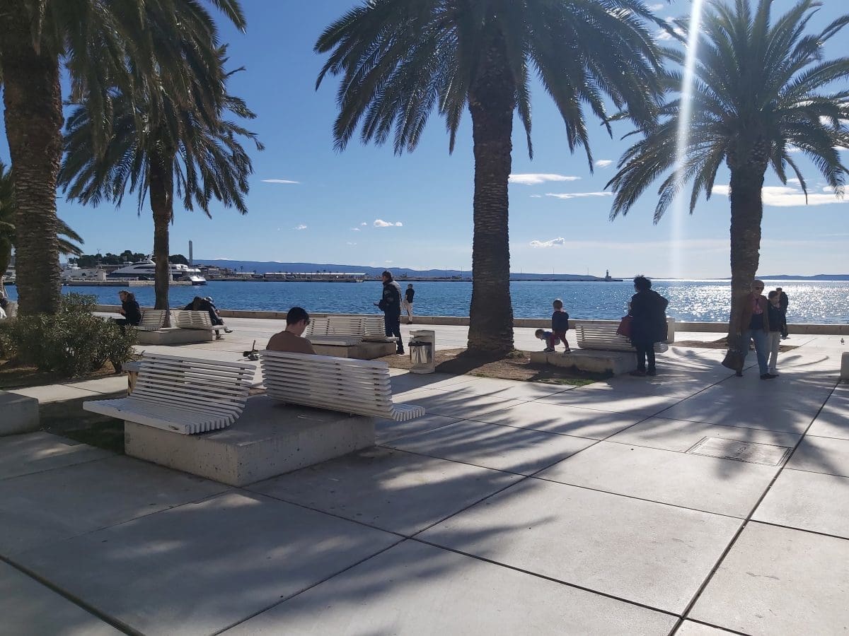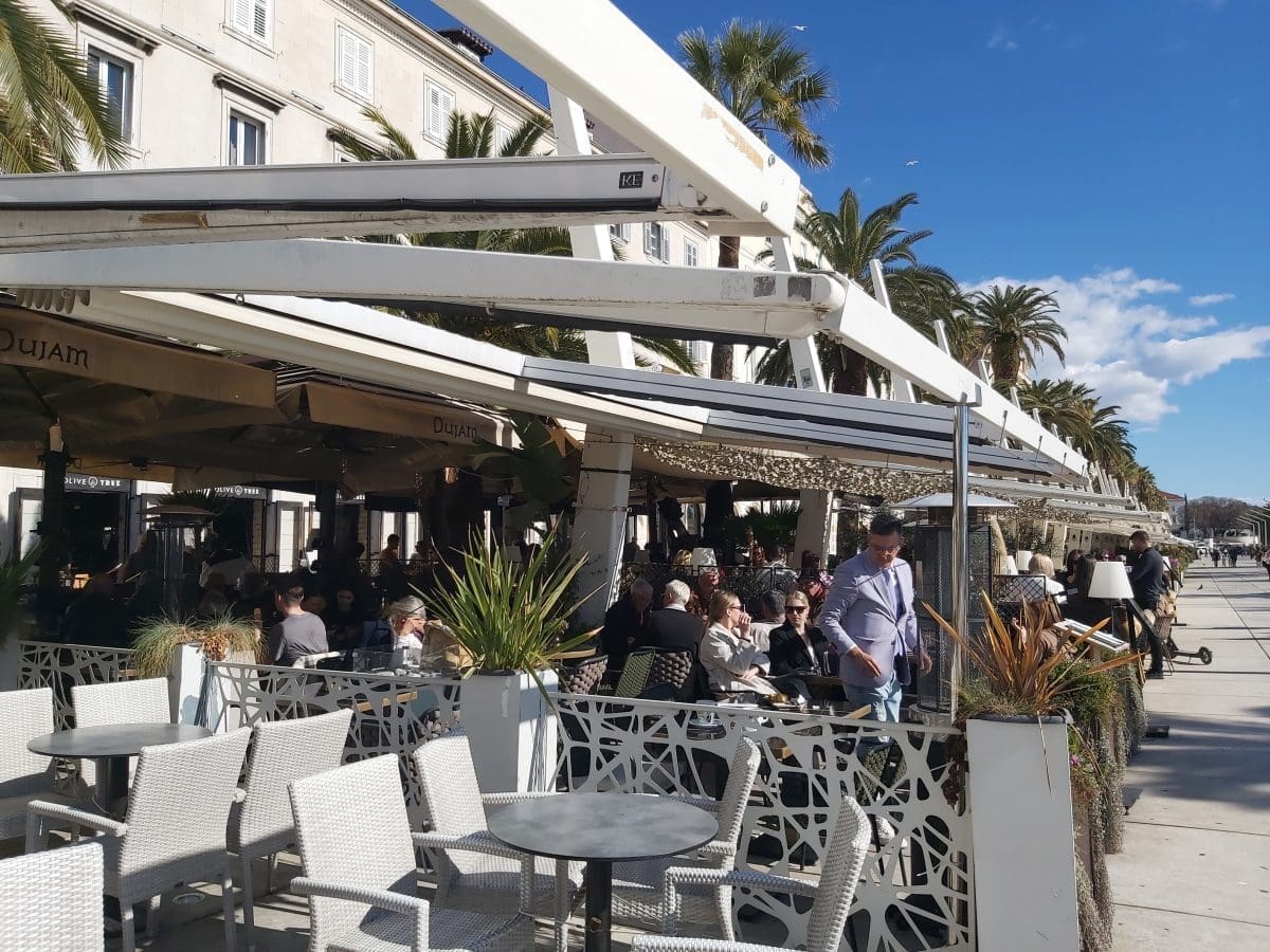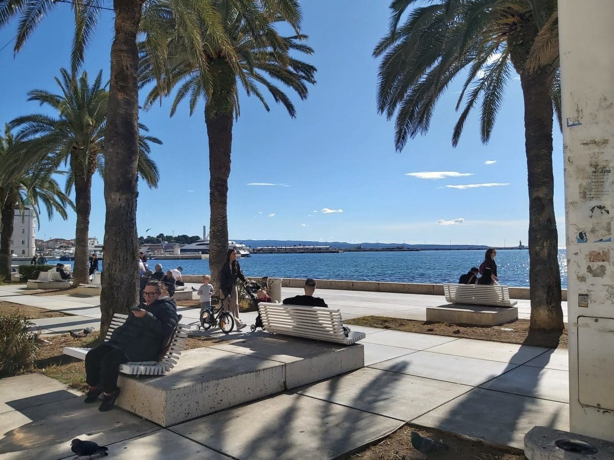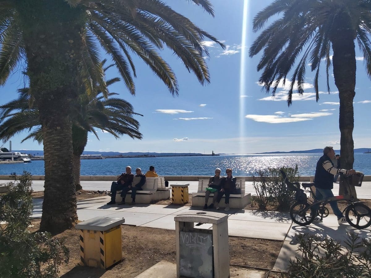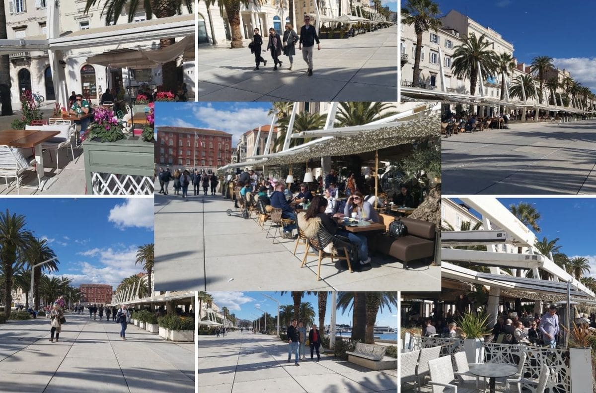 Sve je puno od Đardina do Zapadne obale. Štekati su prilično dobro popunjeni, jer je dan idealan za popiti kavu na suncu - kako to i priliči radnom danu u Splitu! Uz more se teško mogla naći prazna klupa za odmoriti noge.