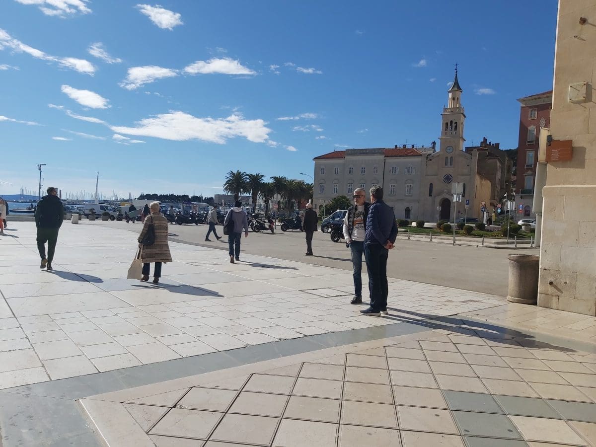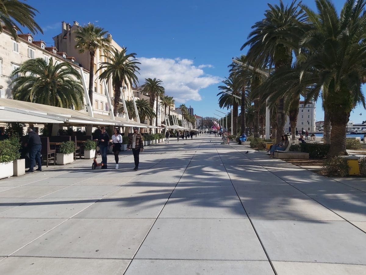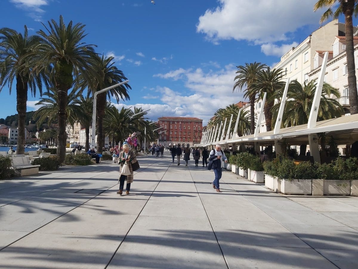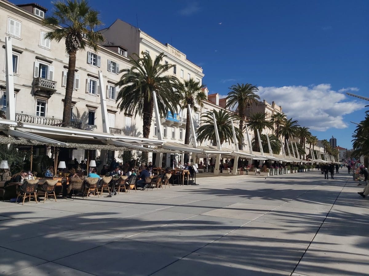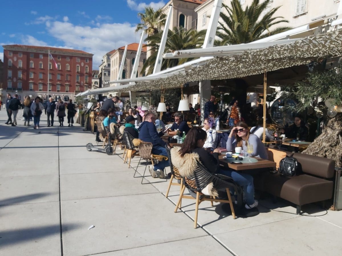 Sve je puno od Đardina do Zapadne obale. Štekati su prilično dobro popunjeni, jer je dan idealan za popiti kavu na suncu - kako to i priliči radnom danu u Splitu! Uz more se teško mogla naći prazna klupa za odmoriti noge.