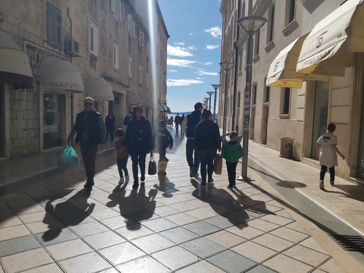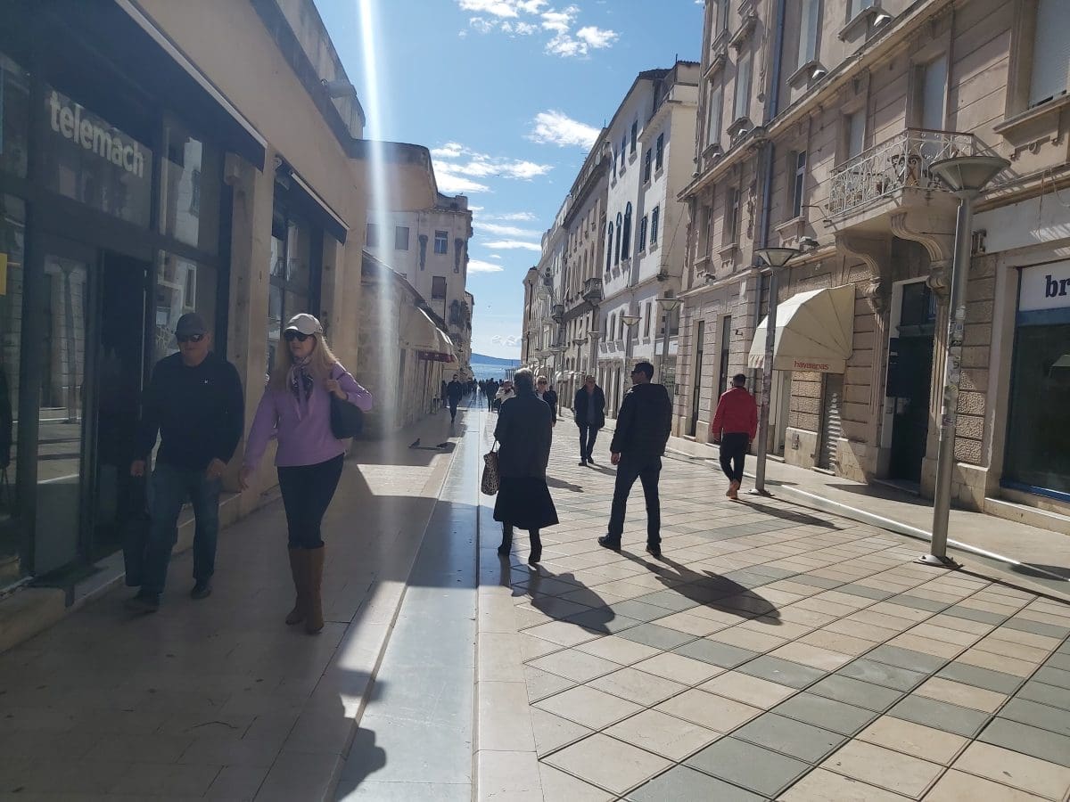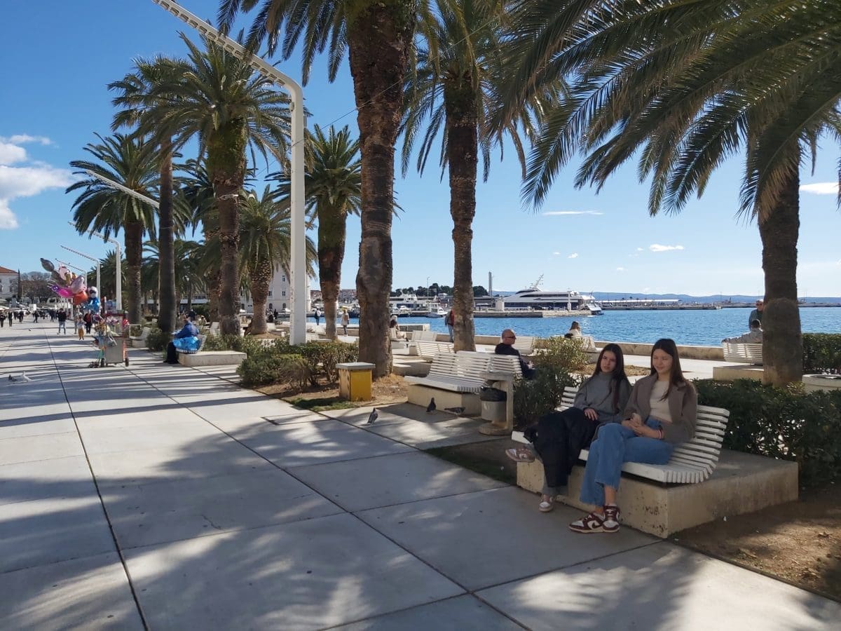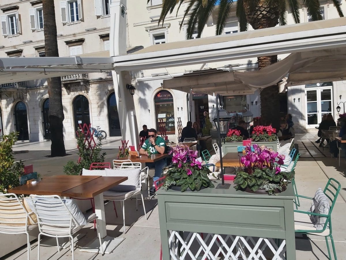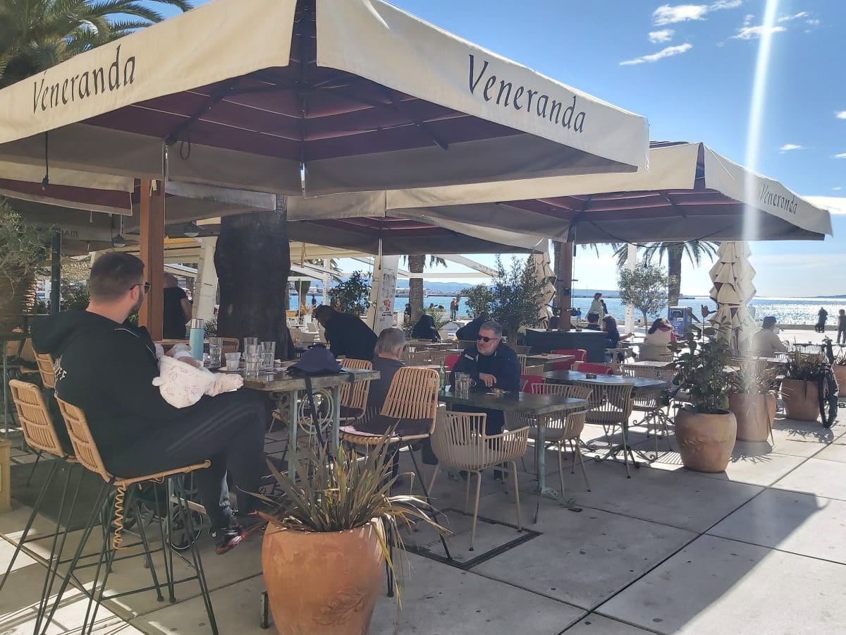 Sve je puno od Đardina do Zapadne obale. Štekati su prilično dobro popunjeni, jer je dan idealan za popiti kavu na suncu - kako to i priliči radnom danu u Splitu! Uz more se teško mogla naći prazna klupa za odmoriti noge.