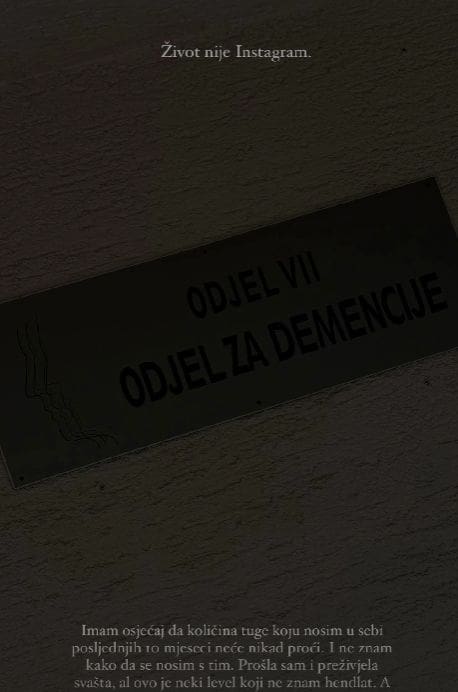 Podijelila je sliku na kojoj se vidi natpis "Odjel za demenciju", ali nije napisala o čemu se točno radi.