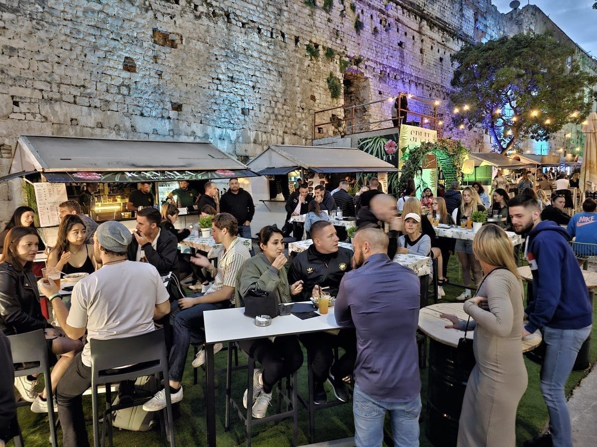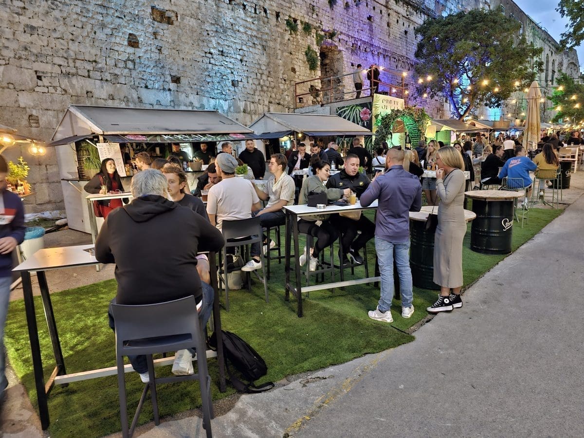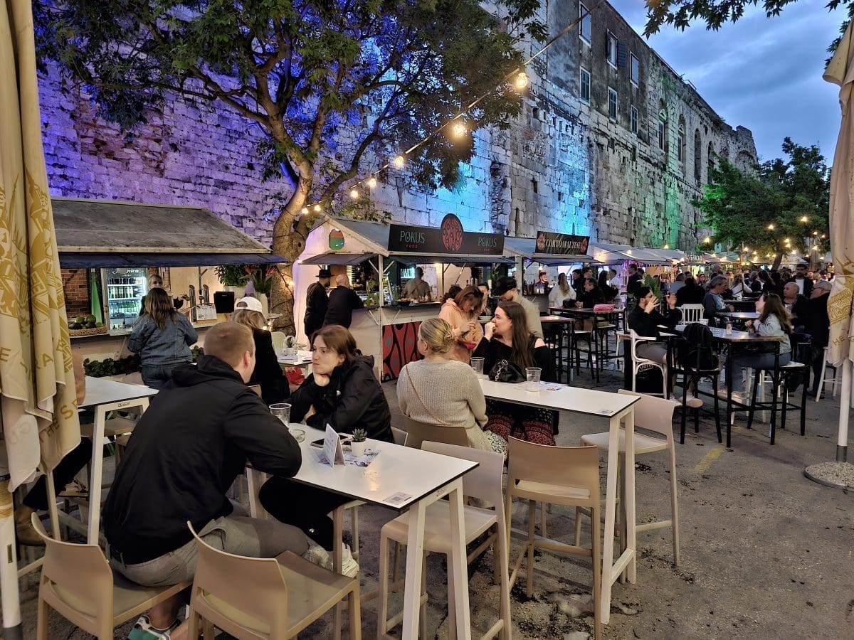 Tako su uzduž prekrasnih zidina Dioklecijanove palače tijekom večernjih sati srijede uživali u street food ponudi osmišljenoj baš za ovaj projekt. Širio se miris janjetinie s bižima, komiške pogače, ragua od vepra i drugih delicija u kojima su uživali okupljeni.