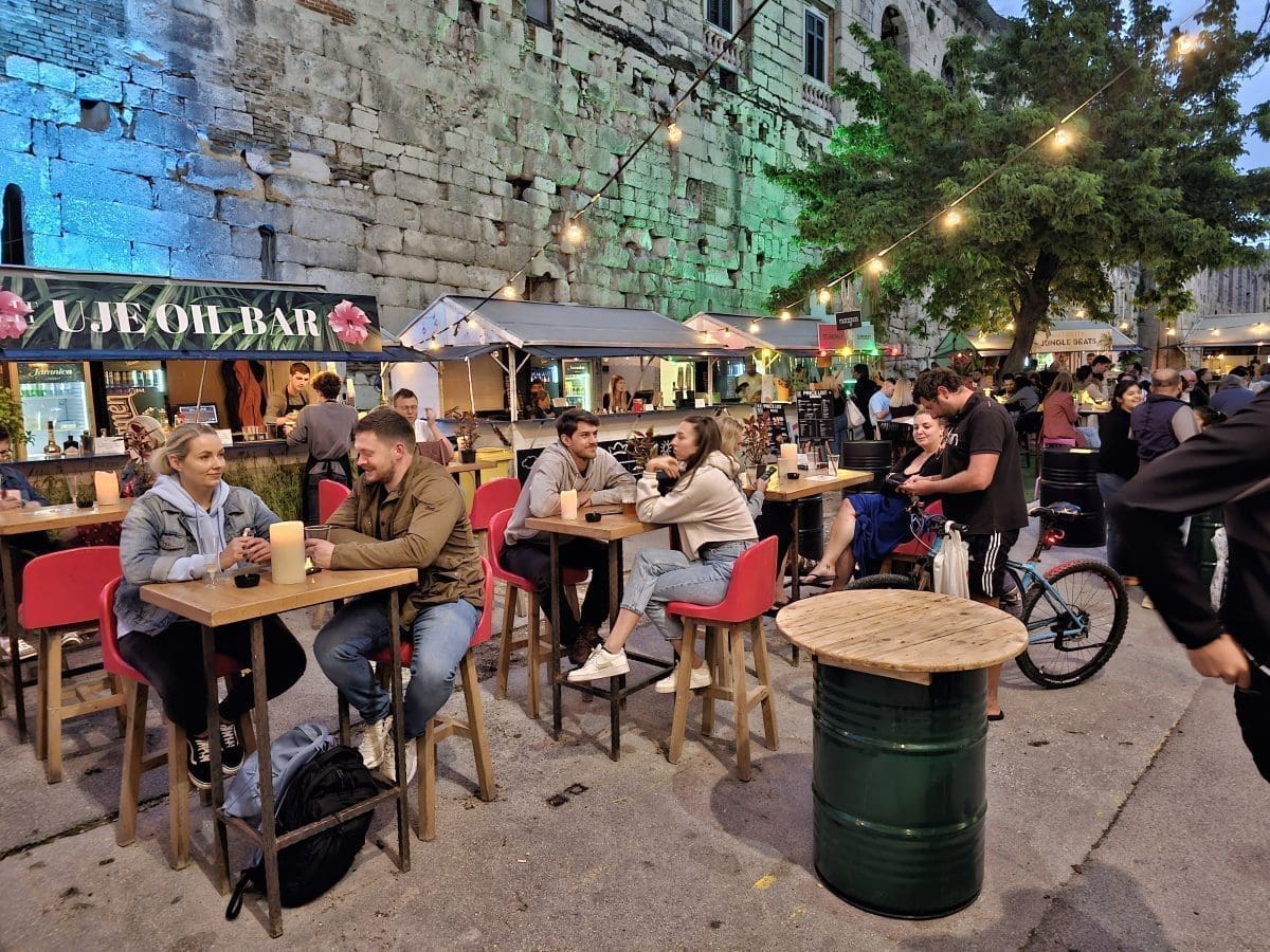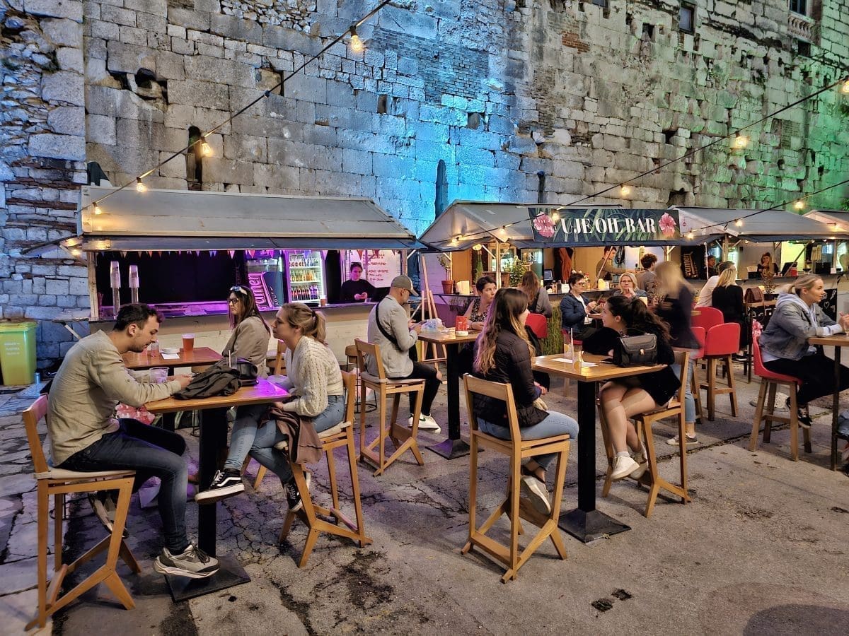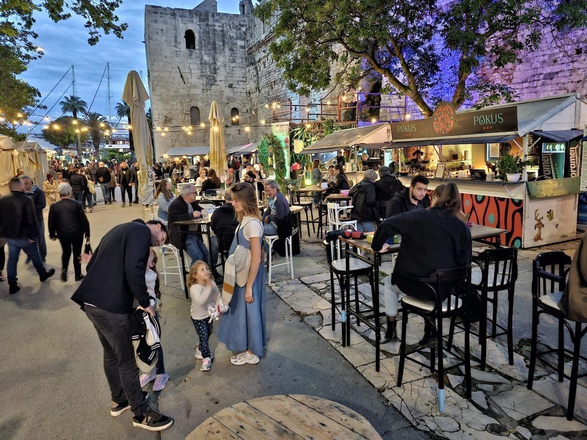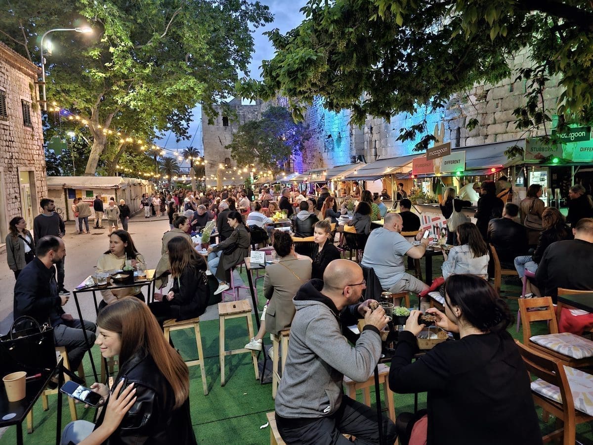 Tako su uzduž prekrasnih zidina Dioklecijanove palače tijekom večernjih sati srijede uživali u street food ponudi osmišljenoj baš za ovaj projekt. Širio se miris janjetinie s bižima, komiške pogače, ragua od vepra i drugih delicija u kojima su uživali okupljeni.