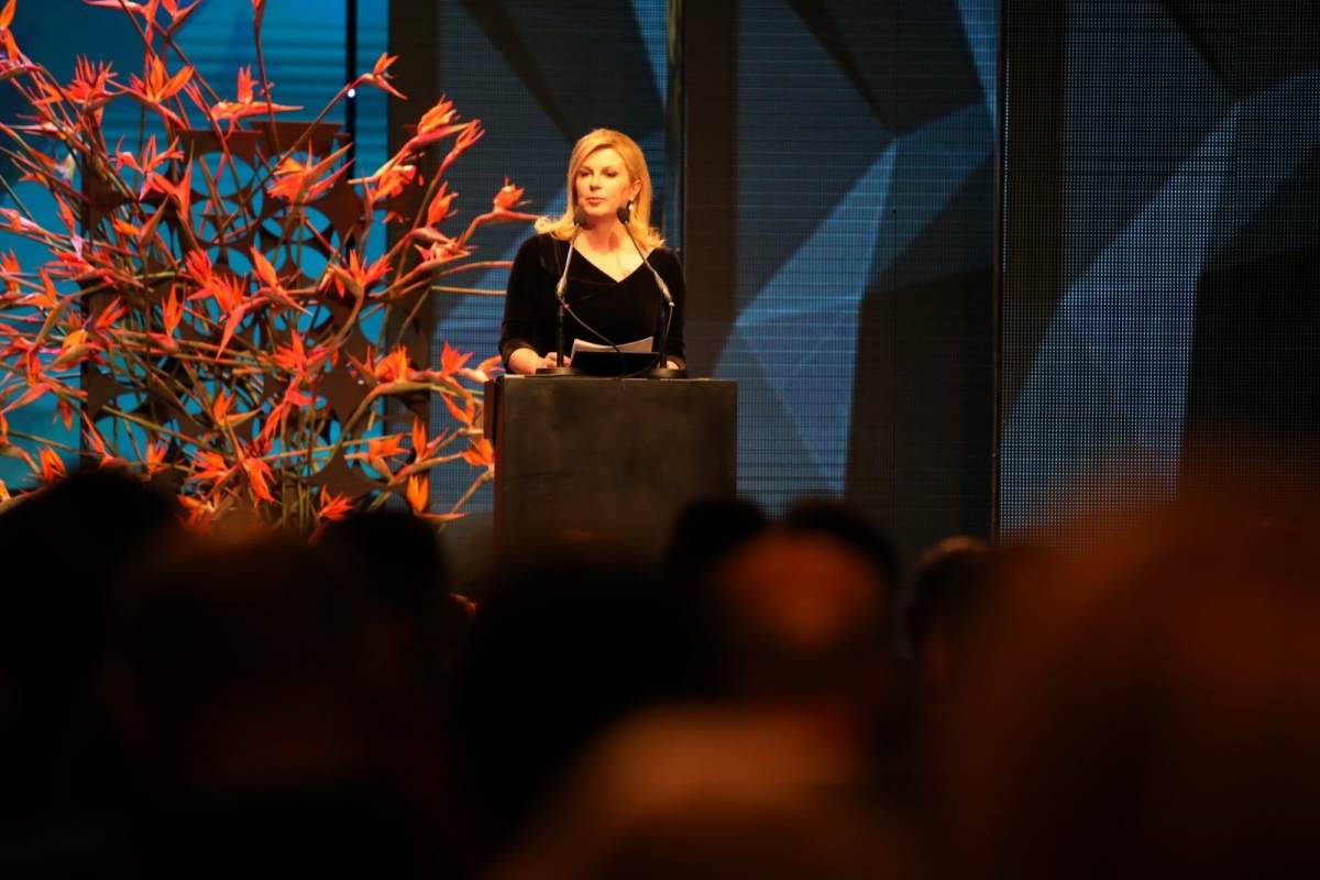 - Ovo je važan događaj jer izražavamo zahvalnost onima na kojima počiva gospodarska budućnost zemlje. Ovdje prikazujemo novu Hrvatsku u kojoj se rad i uspjeh priznaju i nagrađuju. Poduzetnici su ostvarili 21, 9 milijardi neto dobiti i već desetljećima dokazuju da se mogu nositi sa svim izazovima. Mi poštujemo načela koja predstavljate, a to su kreativnost, inovativnost, naporan rad i stručnost, vrijednosti koje su utkane duboko u tkivo hrvatskog naroda - naglasila je Grabar-Kitarović, uz napomenu kako je veliki optimist jer zna da možemo stati uz bok najboljima zajedničkim radom i trudom.
