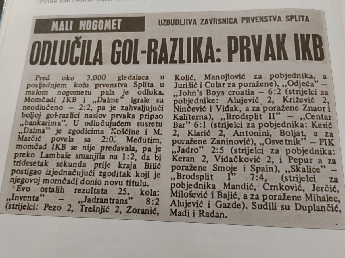 Našu štoriju o splitskom malom balunu počeli smo u spomen na pedesetu obljetnicu utakmice koja je odlučivala o prvaku Splita, te daleke 1974. godine, a sve će kulminirati izlaskom sudionika i igrača koji su u tom "zlatnom" periodu 70 i 80-tih godina prošlog stoljeća nosili dres DALME i IKB-a (kasnije DALMASTROJ), na teren male dvorane na Gripama, 1. studenog uoči premijerne utakmice u Splitu između MNK Torcida i Osijeka, u sezoni 2024/25.