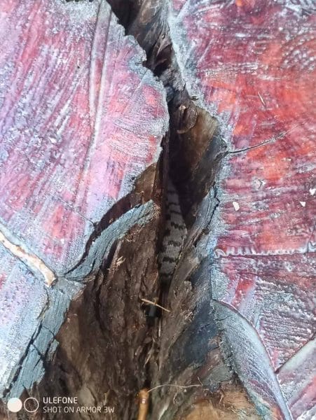 Zmija se uvukla u panj pa su morali upotrijebiti alat da je izvade.