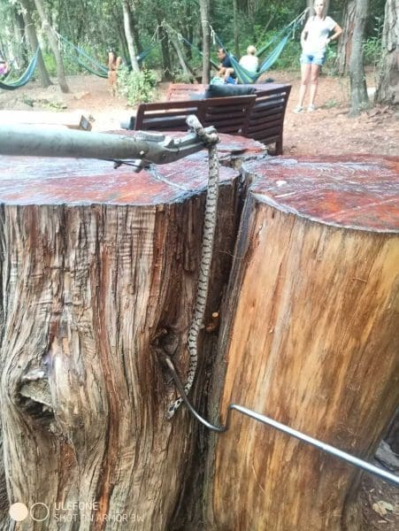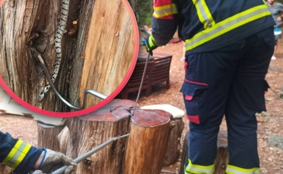 Rovinjski vatrogasci objavili su fotografije s njihove intervencije na koju su izašli zbog zmije koja se našla u panju u parku. Park se inače koristi kao stol.