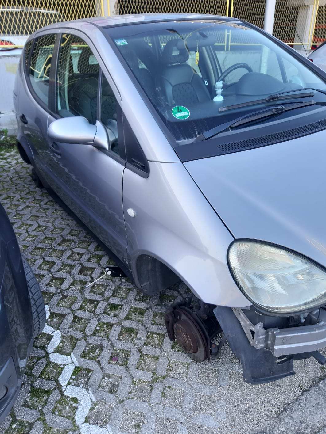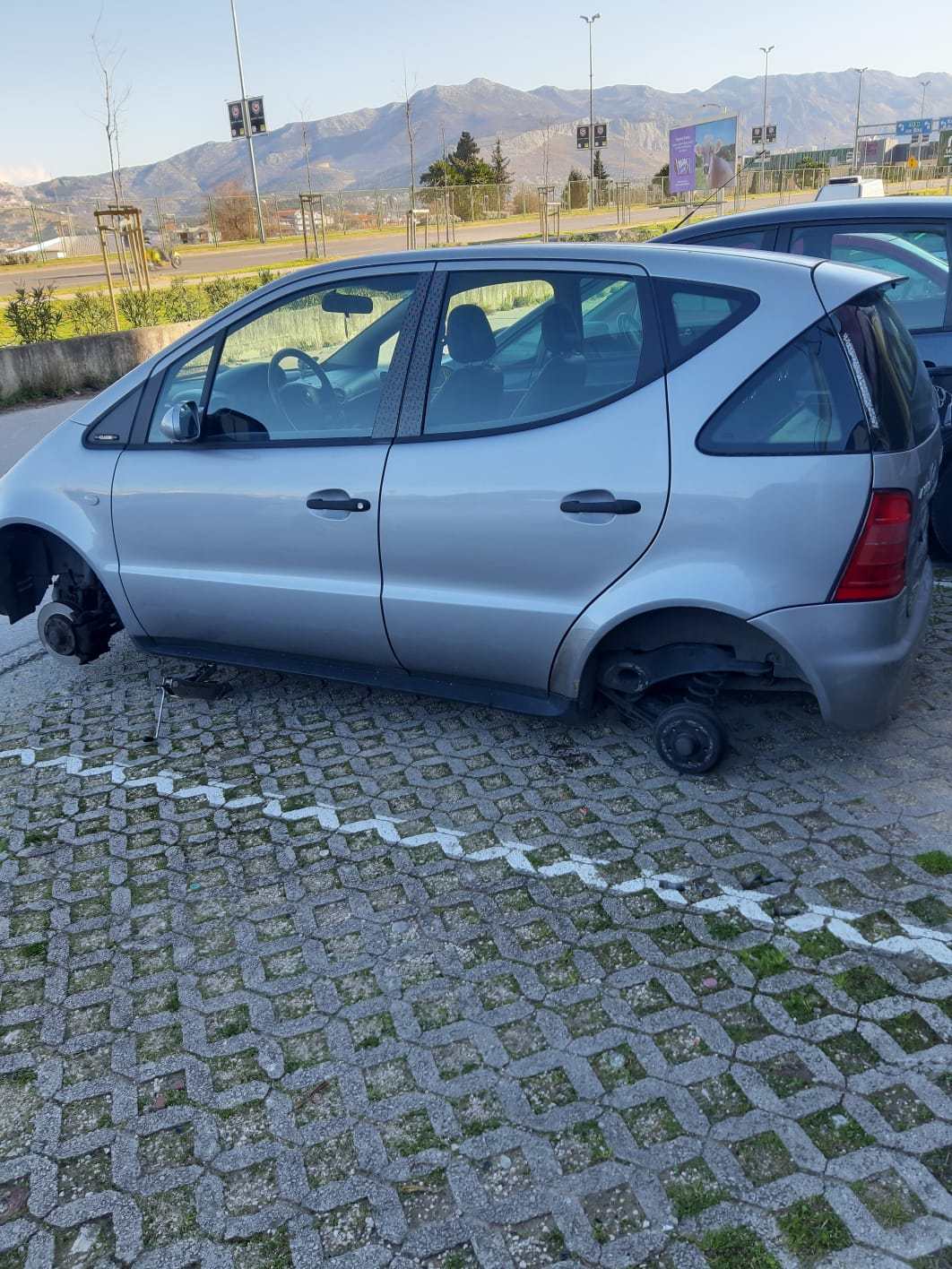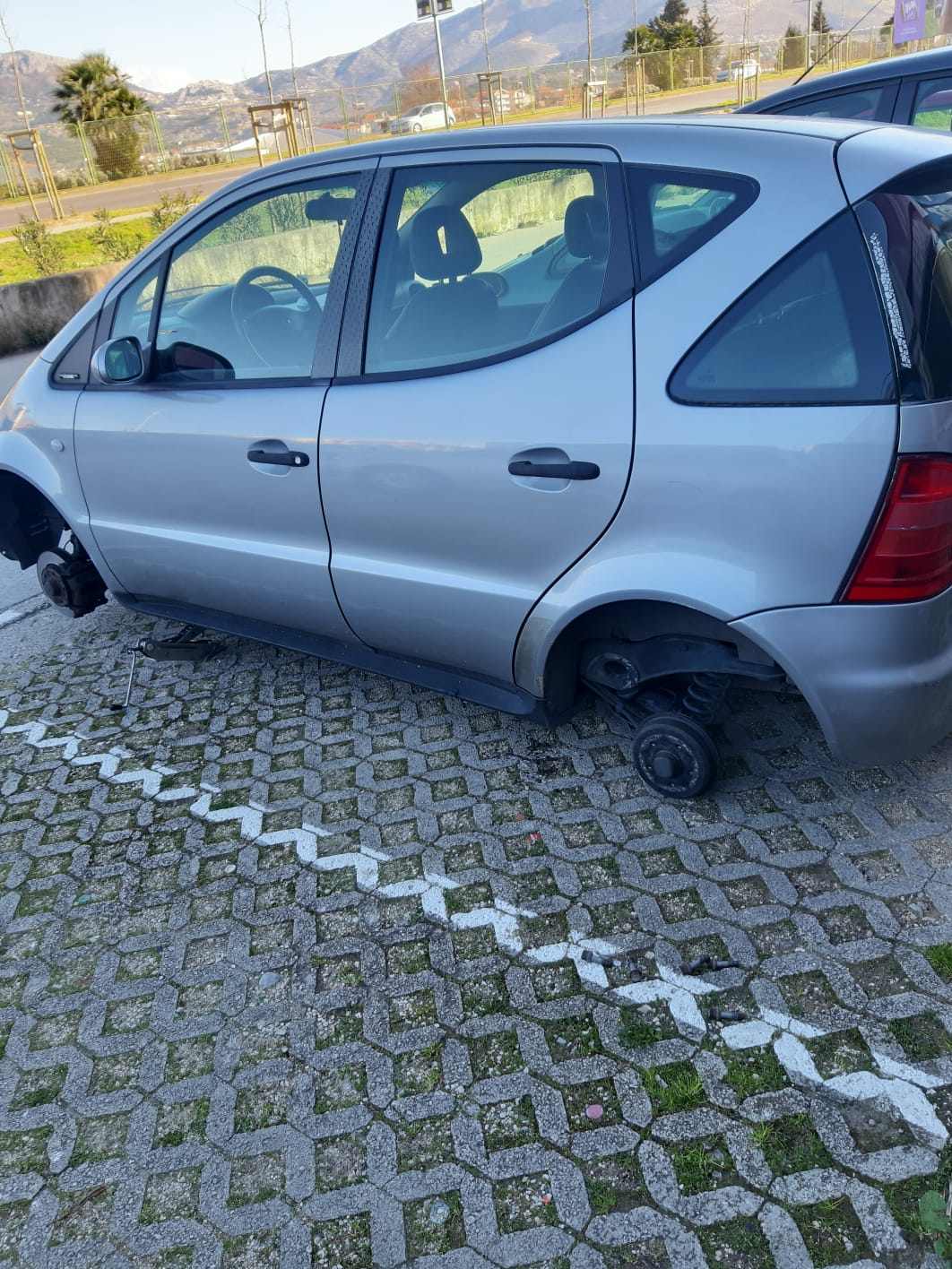 E, jutros je 'živac' našem čitatelju itekako taknut. On je najranije jutros svog Mercedesa zatekao kako leži na podu, bez felgi i guma, ali i branika.