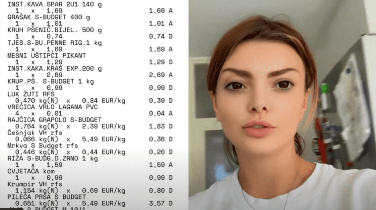 Ella je u svom videu obavila manji shopping, odrekla se gotovo svega i skuhala obroke za tjedan dana. Nije izlazila na večere, nije pila kavu u gradu i nije kupovala odjeću. Obroci koje je skuhala bili su pristojni, no na kraju je sama priznala da bi s 30 eura tjedno mogla živjeti samo ako bi baš morala.
