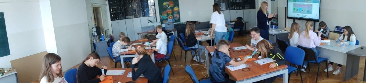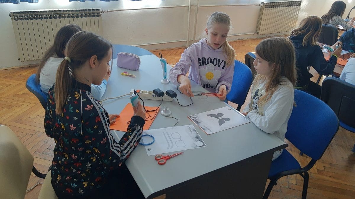 Na radionici modeliranja 3D olovkom učenici su upoznali tehnologiju za 3D modeliranje, mogućnosti primjene i postupke pri korištenju iste te su pomoću 2D predložaka oblikovali 3D modele i tako razvijali maštu, kreativnost, inovativnost i tehničke kompetencije! Modelirali su obične naočale, naočale s krunom, pandu, helikopter, zrakoplov, držač za ubruse i leptira. Na radionici je sudjelovalo 19 učenika četvrtih razreda.