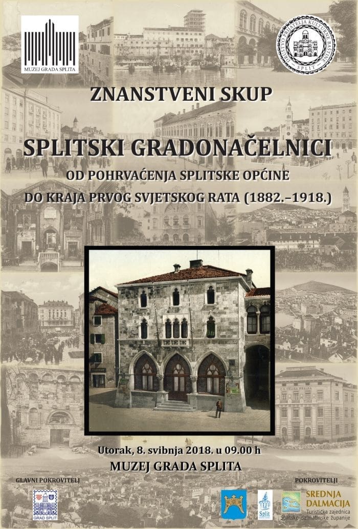 Muzej grada Splita i Društvo prijatelja kulturne baštine Split organiziraju znanstveni skup “Splitski gradonačelnici od pohrvaćenja splitske Općine do kraja Prvog svjetskog rata (1882.-1918.)” u utorak, 8. svibnja 2018. s početkom u 9.00 sati u Gotičkoj dvorani Muzeja grada Splita. Simpozij se održava u sklopu ovogodišnje proslave zaštitnika grada Splita sv. Dujma Glavni pokrovitelj simpozija je Grad Split. Ostali pokrovitelji su: Splitsko-dalmatinska županija, Turistička zajednica grada Splita i Turistička zajednica Splitsko-dalmatinska županije.