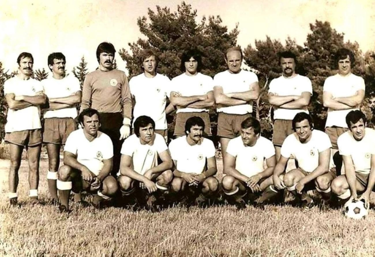 I lijepo se vidi na fotografiji ekipa tadašnjih veterana, već pomalo zašlih u godine, a još dovoljno mlađahnih da se mogu zatrčati po kaštelanskom igralištu. Pa tako prepoznajemo na fotografiji, po redu: Dragan Slišković, Joško Gluić, Radomir Vukčević, Aco Čulić, Zdravko Čolić, Ferante Colnago, direktor PUME i bivši igrač Bayerna Hans Nowak, Siniša Fulgosi, povratnik iz Australije Bitunjac, Miroslav Ferić, Ante „Zonzi“ Ivković, Zvonko Bego, tadašnji generalni tajnik Hajduka Ante Žaja i Marin Kovačić.