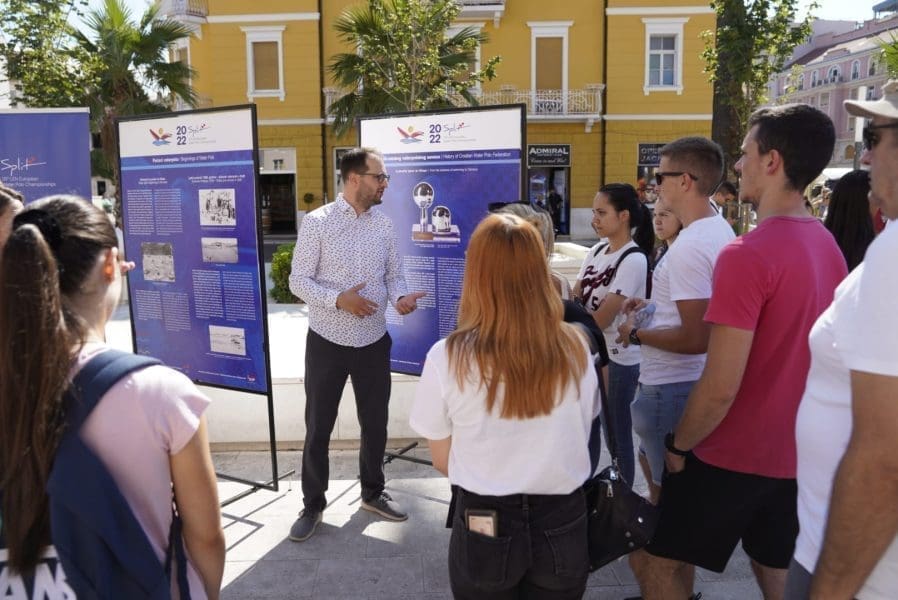 Izložba je svečano otvorena u 10 sati ispred zgrade Hrvatskog narodnog kazališta u Splitu, a svečanost su uveličali Danira Bilić, ravnateljica Hrvatskog športskog muzeja, Renato Živković, glavni tajnik Hrvatskog vaterpolskog saveza i izvršni direktor Organizacijskog odbora Europskog prvenstva Split 2022. te kustosi Petra Husain Pustaj i Marijan Sutlović.