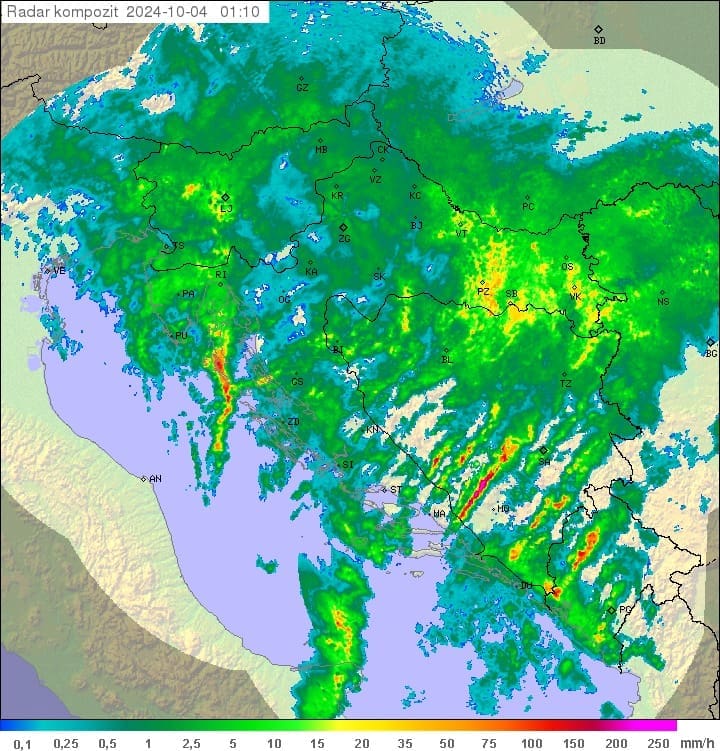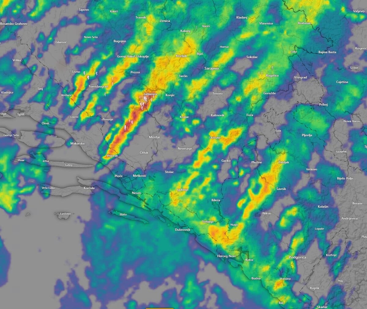 DHMZ je jučer objavio radarsku snimku kumulativnih 24-satnih oborina na kojoj se jasno vidi da je olujna oborinska pruga krenula iz Dalmacije, a području Jablanice donijela je više od 200 litara po metru kvadratnome. Ne neki način, nedostajalo je tek je nekoliko desetaka kilometara da se nevrijeme u BiH dogodi s naše strane granice.
