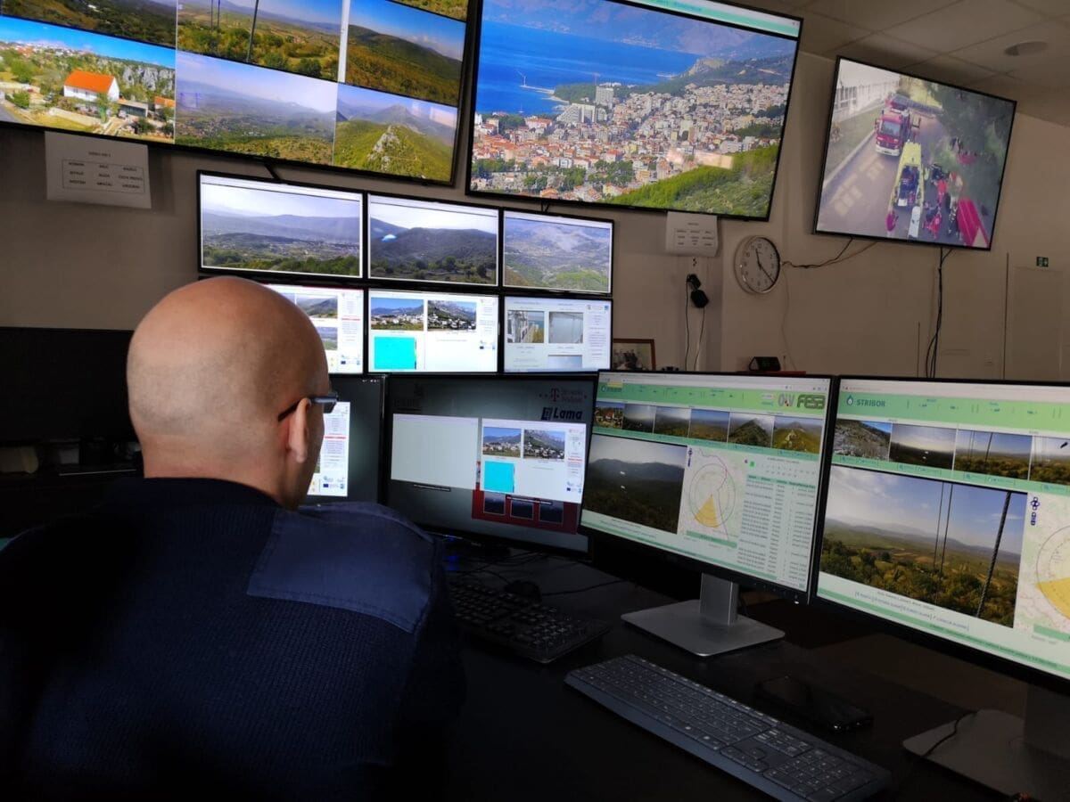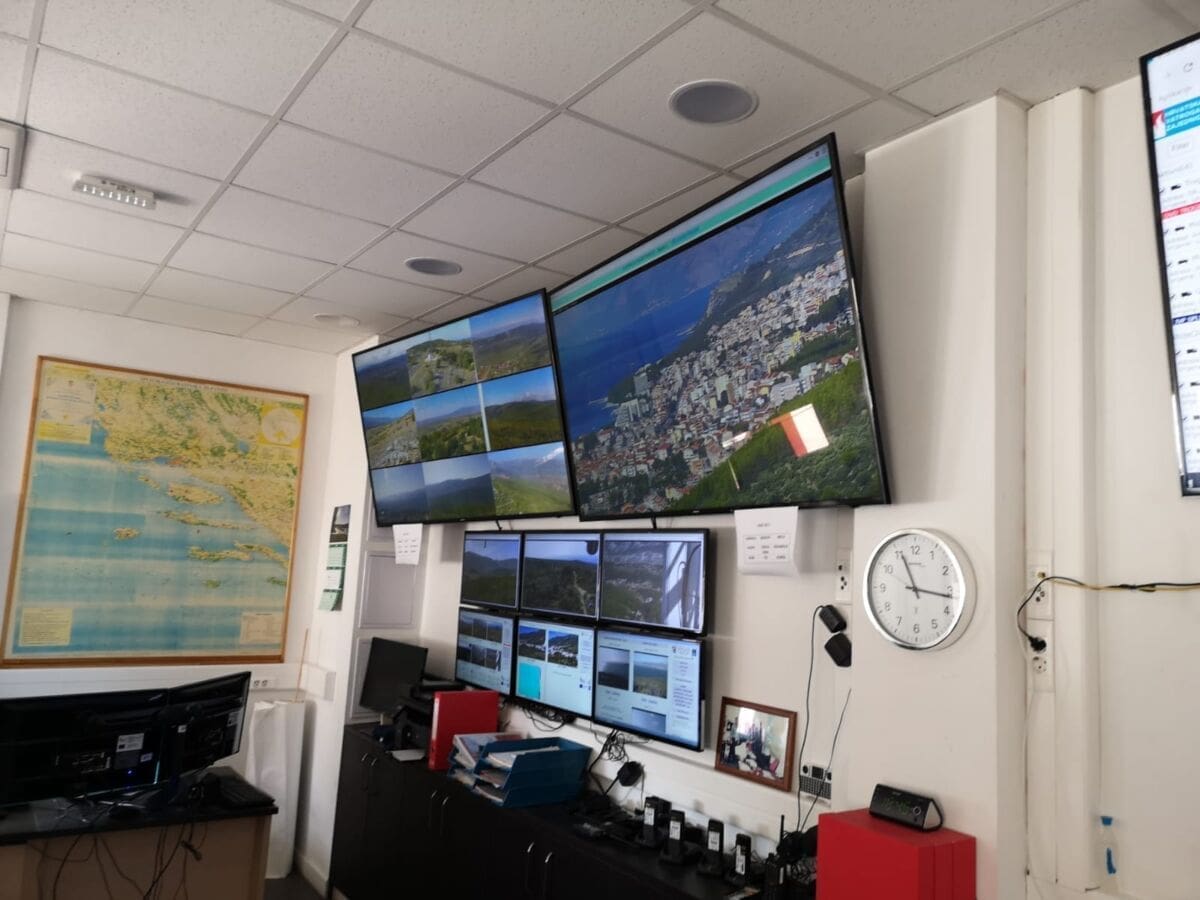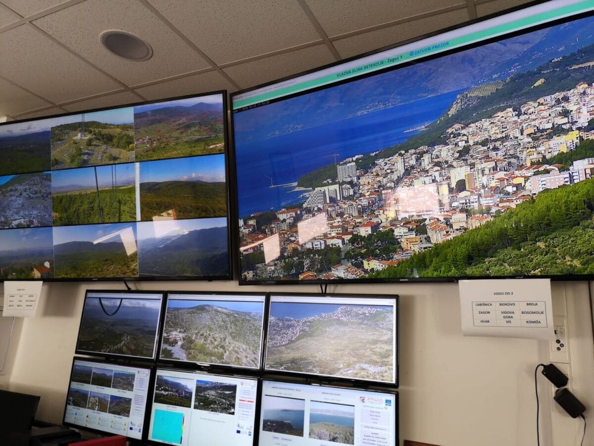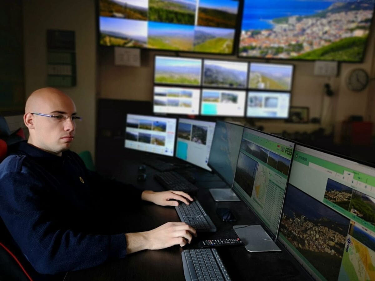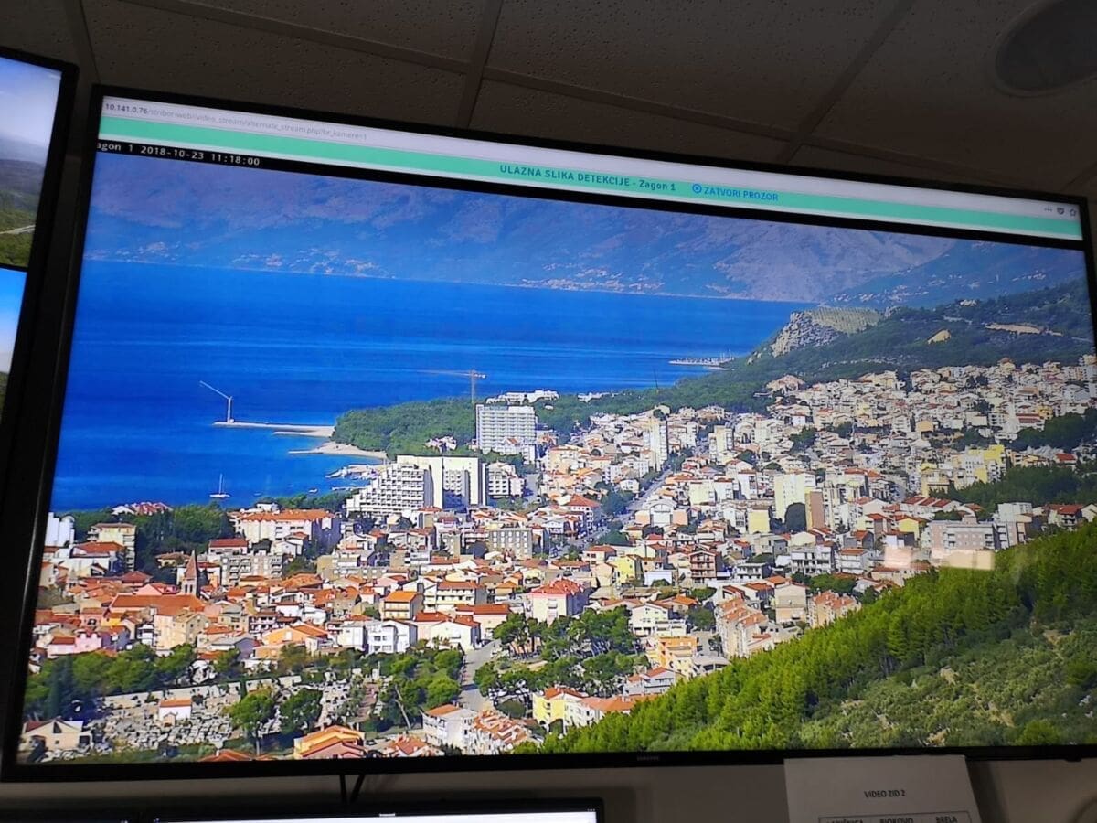 - U Centru pratimo čak 18 lokacija putem 36 nadzornih kamera. Radi se o visokorezulocijskim kamerama koje pokrivaju kut od 360 stupnjeva. Kamere su postavljene diljem Zagore, obale i otoka. Trenutno pratimo vježbu evakuacije škole u Makarskoj. Cijela akcija se prati u realnom vremenu. Radi se o lokalnoj vježbi koja se odvija na redovnoj razini.