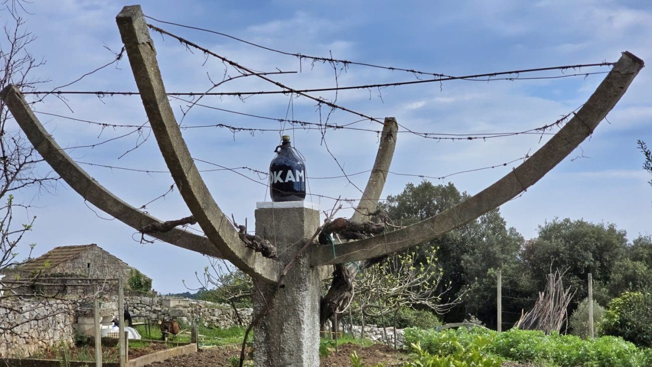 Na tom je trgu podignut i jedinstveni spomenik vinu: petolitarski bocun oko kojega se, čim loza zazeleni, isprepletu vitice pa skulptura nalikuje živom stablu. Najbolje crno vino se ulijeva u njega 25. ožujka, na Gospu od Nuncijate, da bi se – protiv svakog enološkog pravila – ostavilo na suncu sve do svetoga Vinka u siječnju. “Ispadne odlično, minira sva vaša pravila,” smije se Andro.