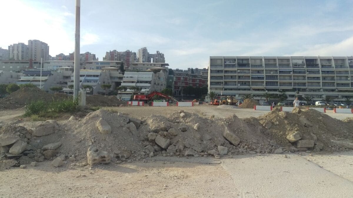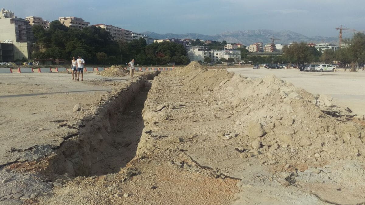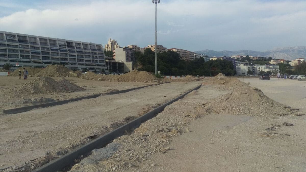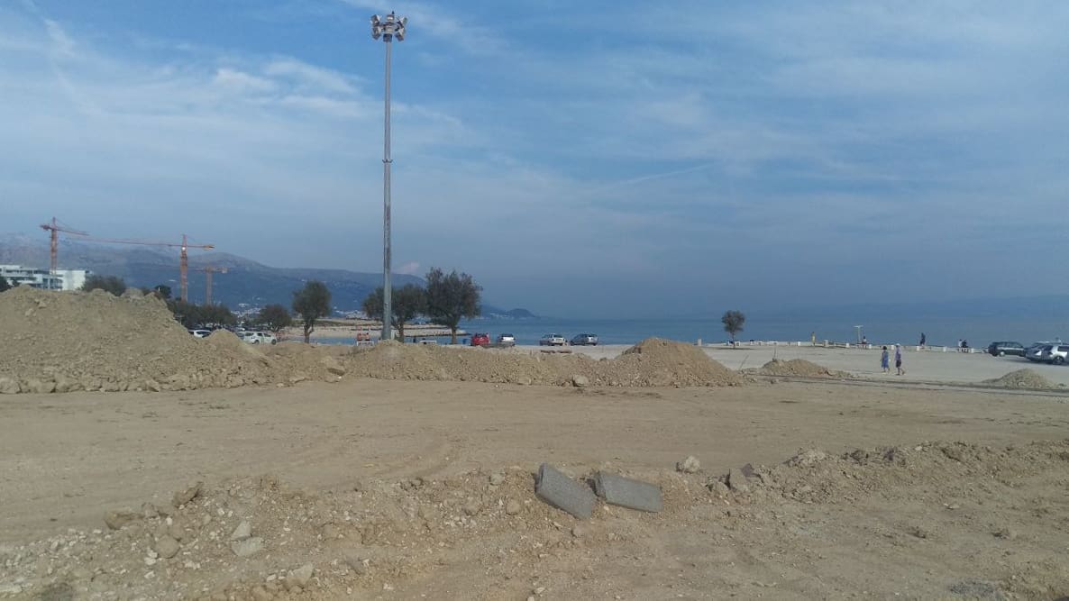 Za razliku od ostalih plaža, splitski Žnjan ipak priča drugu priču. Kupači su došli na plato prepun bagera, kanala i teške mašinerije. Iako se sam prostor uz more nije dirao to nije slučaj s dijelom "uz cestu" gdje se vode radovi na zemlji, ali i ispod nje. Provlače se cijevi, električni kabeli i sve ostalo potrebno za montažu novih privremenih objekata. Kako nam se čini radovi nisu zasmetali kupačima koji su kao i proteklih godina uživali u moru, ipak, u nešto manjem broju.