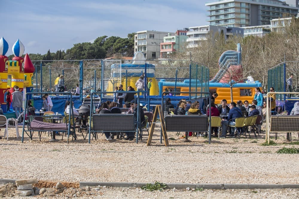 Privremeno rješenje na Žnjanu zaživjelo je lani početkom srpnja. Ovo rješenje sadržava osam ugostiteljskih sklopova, a svaki od njih ima dva modula površine 12×12 metara plus skladišni prostor i 300 do 400 metara četvornih terase.