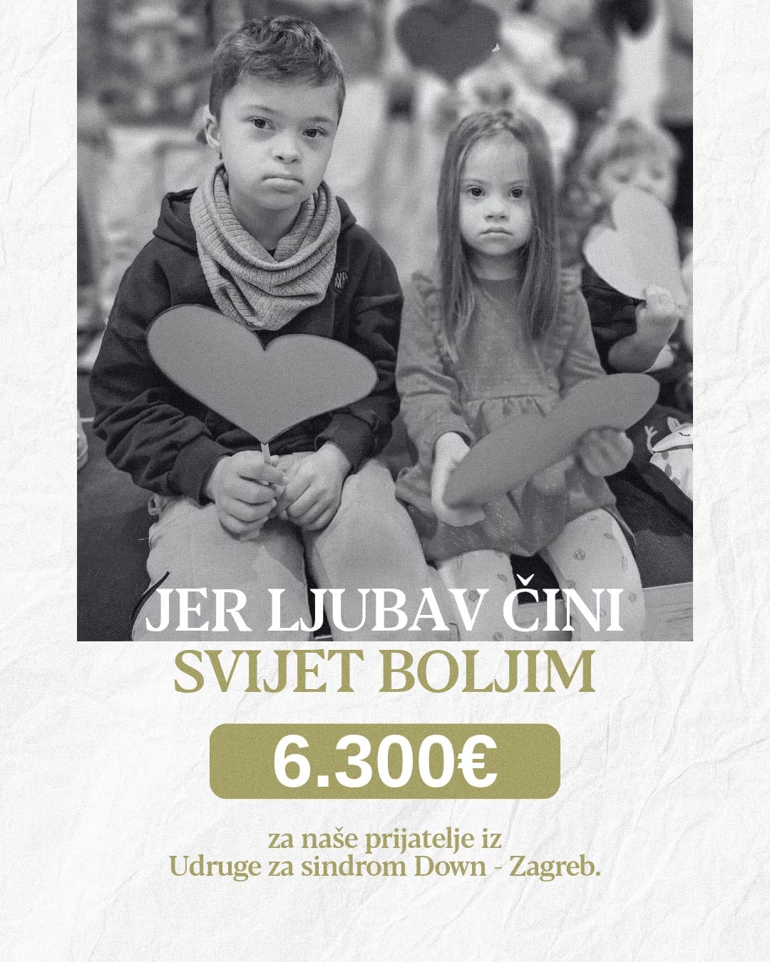 Kako su ranije najavili, iz Zorine masti odlučili su 10 posto ukupnog web prometa ostvarenog u prvih 15 dana prosinca donirati organizaciji koja skrbi o jednoj od najosjetljivijih skupina u društvu. Prikupljeni iznos bit će usmjeren na unapređenje kvalitete života djece i odraslih sa sindromom Down, kroz razvoj programa podrške, edukacije, uključivanja u zajednicu i jačanja samostalnosti.