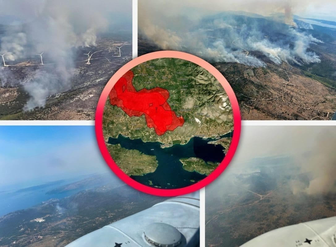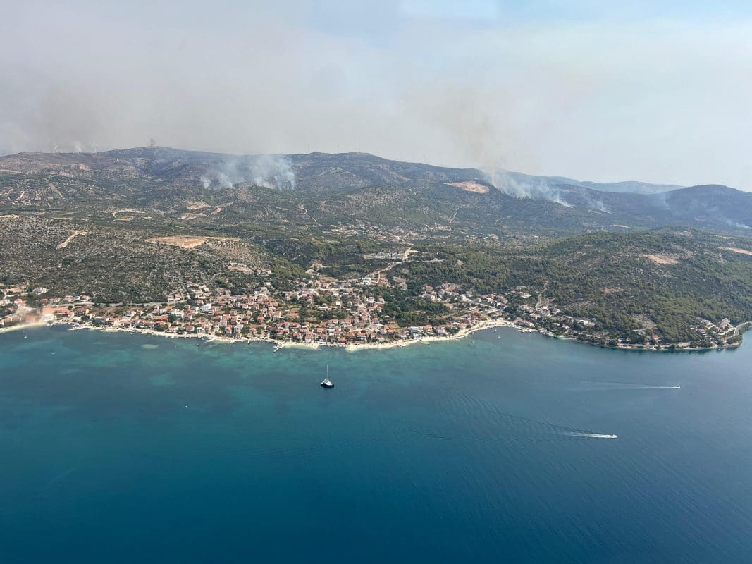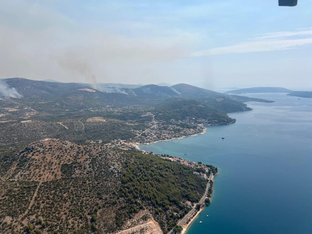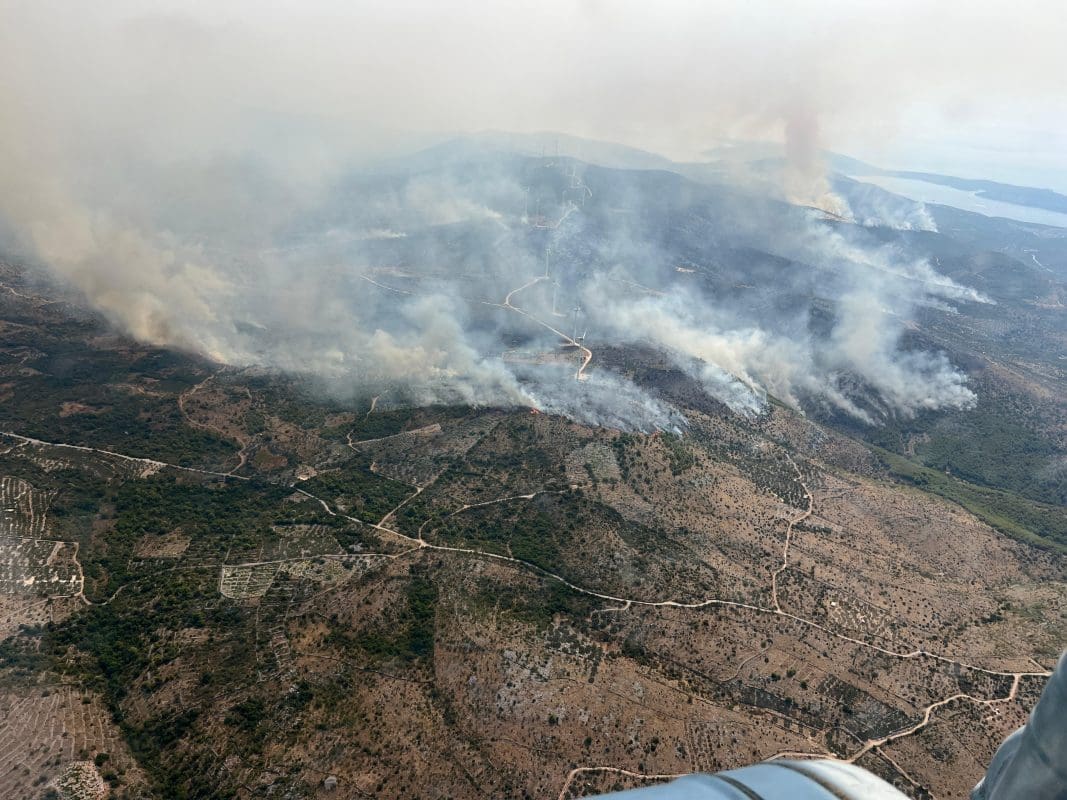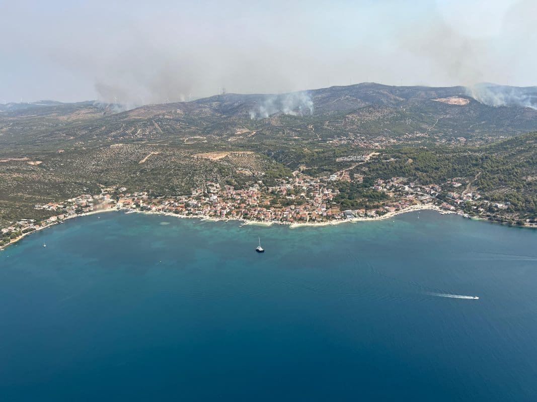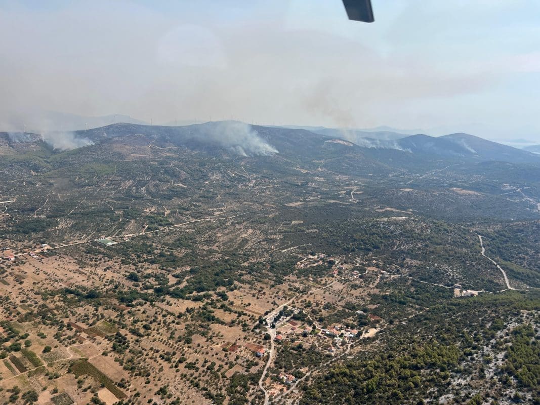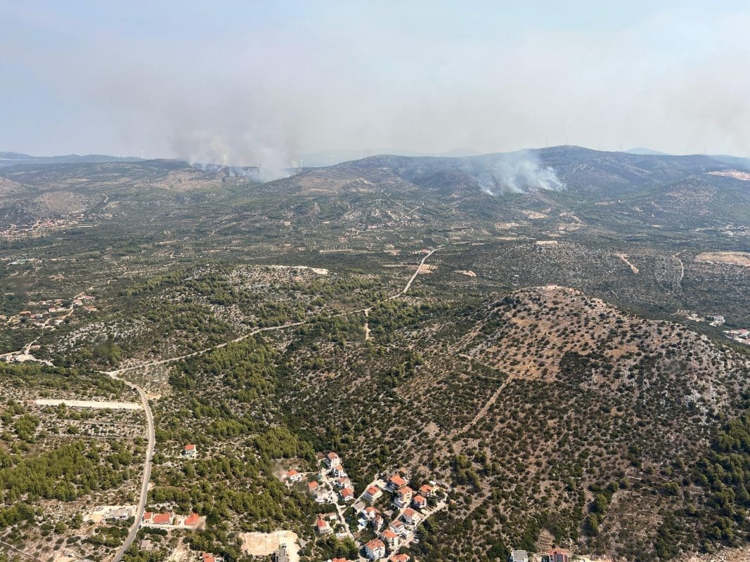 Veliki požar u trogirskom zaleđu i dalje je aktivan, a veliki stup dima pojavio se kod sela Jajić prije 19 sati. Nakon što su spriječili širenje požara kod Kotlenica, jedan se kanader ponovno premjesti nad Vrsine.
