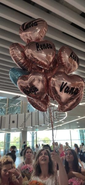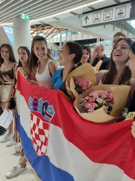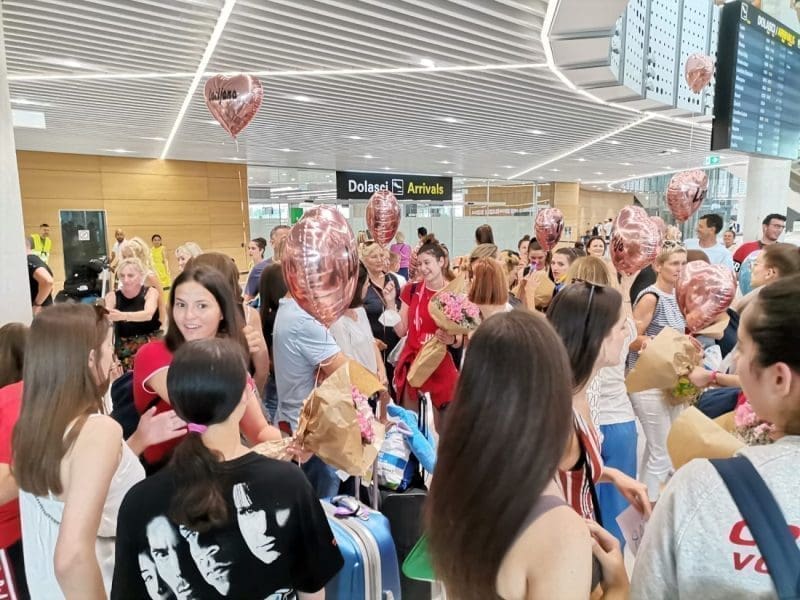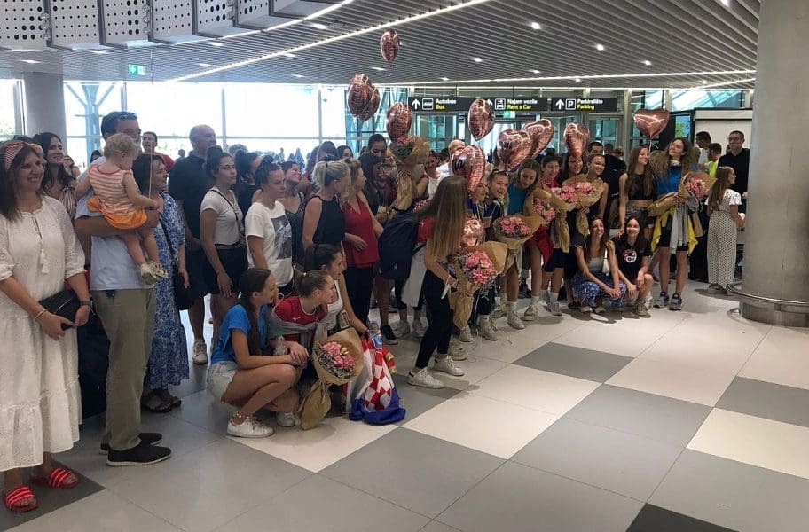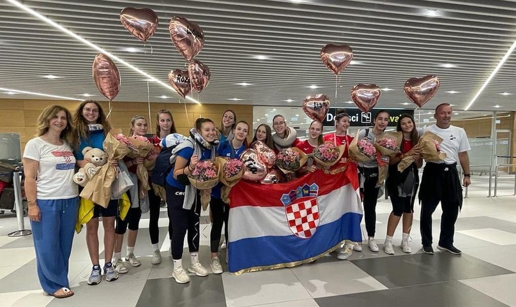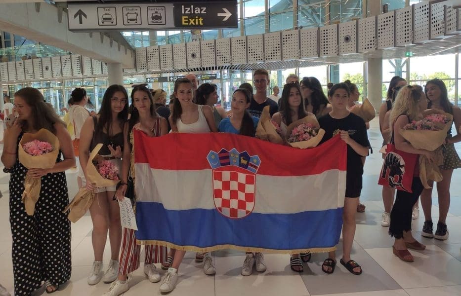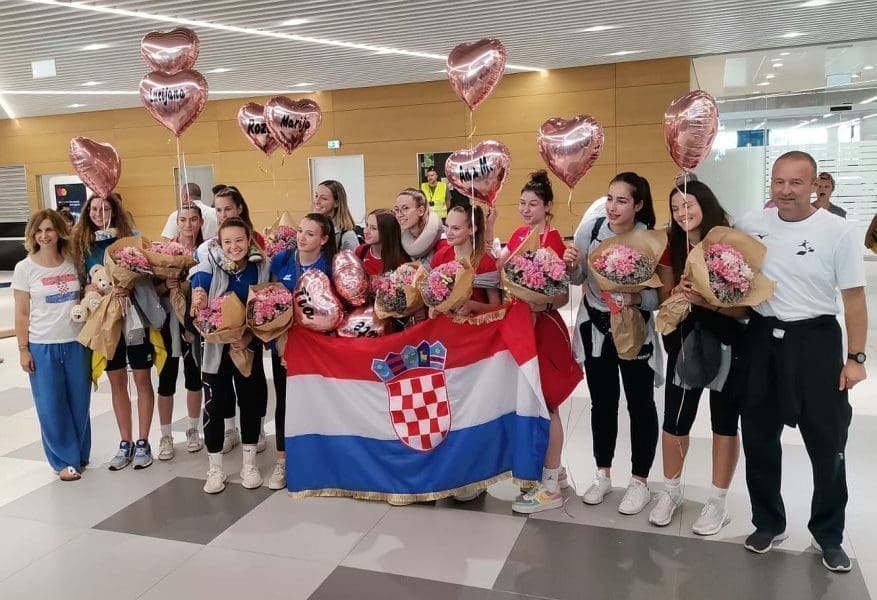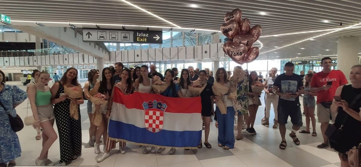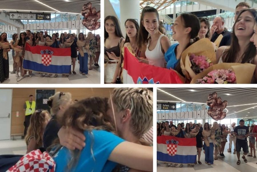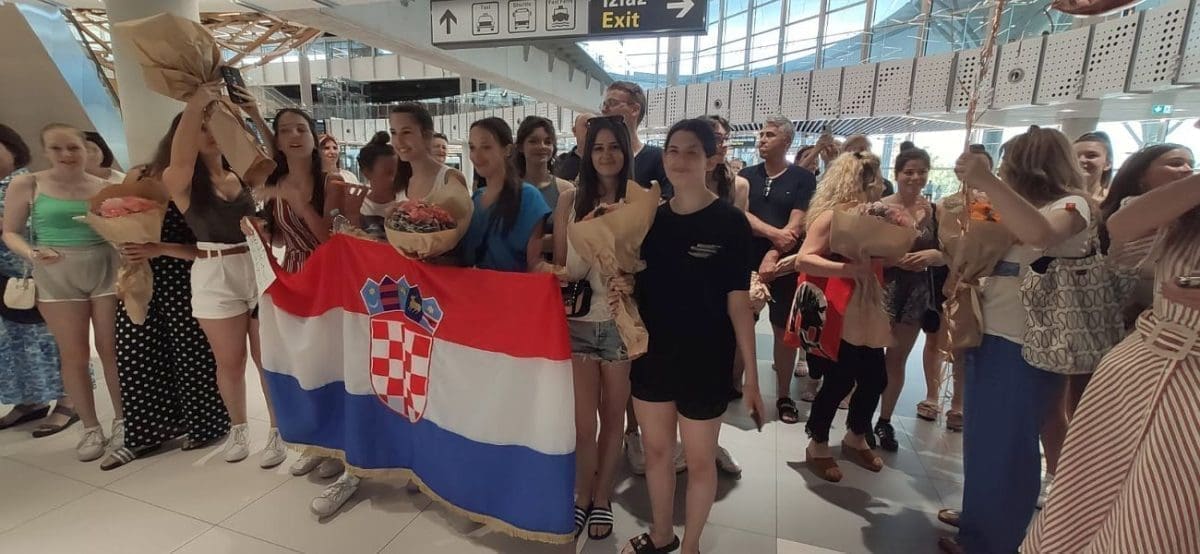 Odbojkašice iz splitske V. gimanzije "Vladimir Nazor" koje su na desetodnevnom Svjetskom školskom odbojkaškom prvenstvu u Brazilu predstavljali Hrvatsku maestralno su dočekane u srijedu u večernjim satima na splitskom aerodromu. Njihova ravnateljica Ankica Kovač osmislila je sve do zadnjeg detalja. Stigli su prijatelji, profesori, razrednici, roditelji, odbojkašice iz klubova... Pala je i pisma "Moš govorit kontra mene..." koja je ujedno i njihova himna za pobjedu.