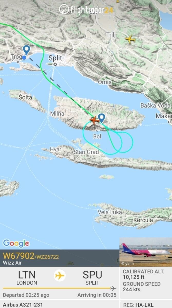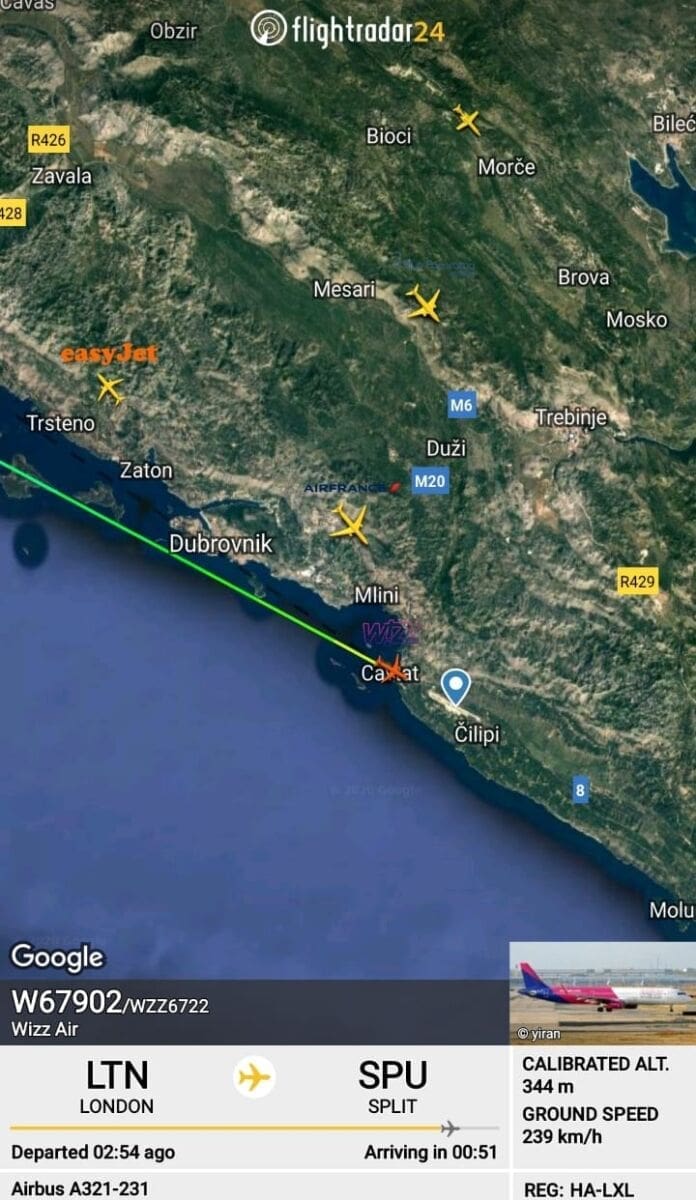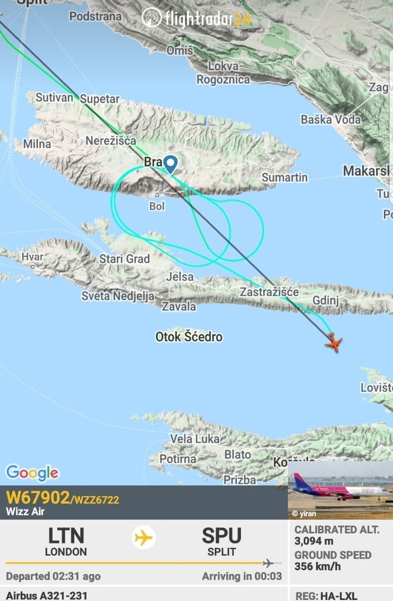 Zrakoplov Wizz Aira koji je u ponedjeljak poslijepodne u 17:15 krenuo iz Londona, trebao je oko 20:30 sletjeti u Split.
