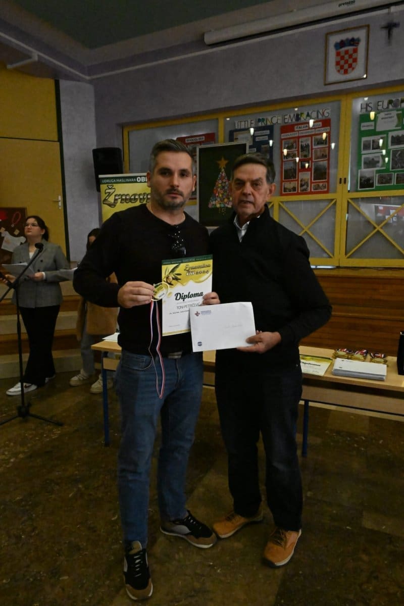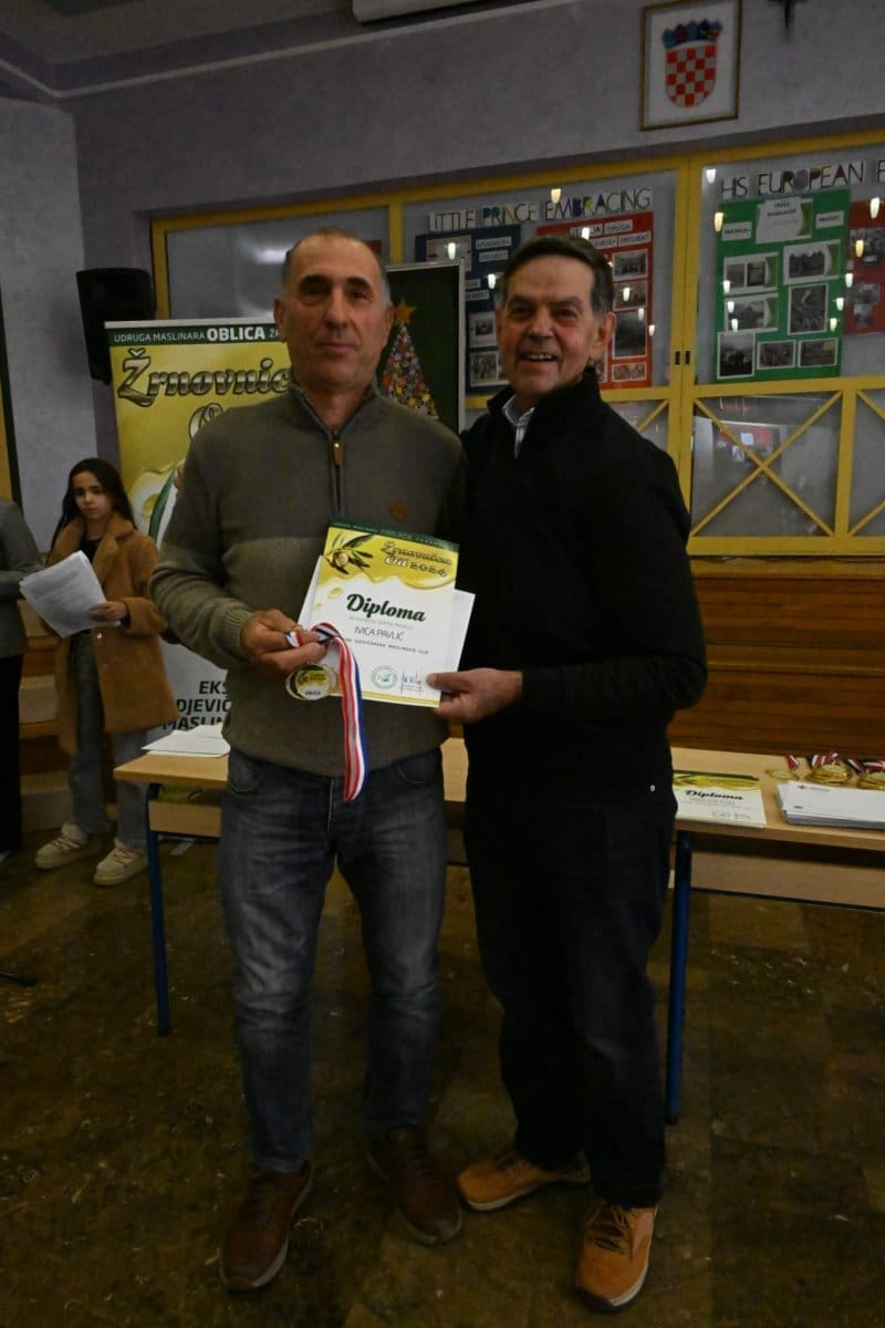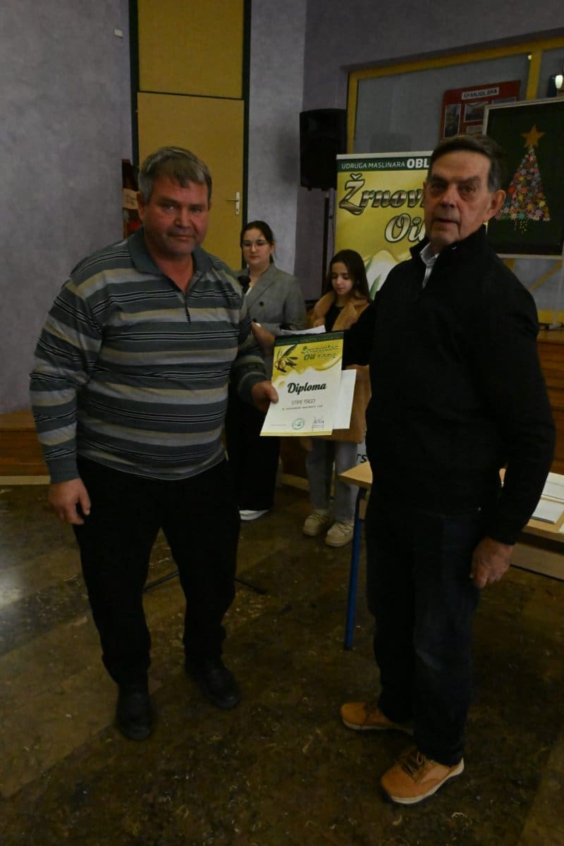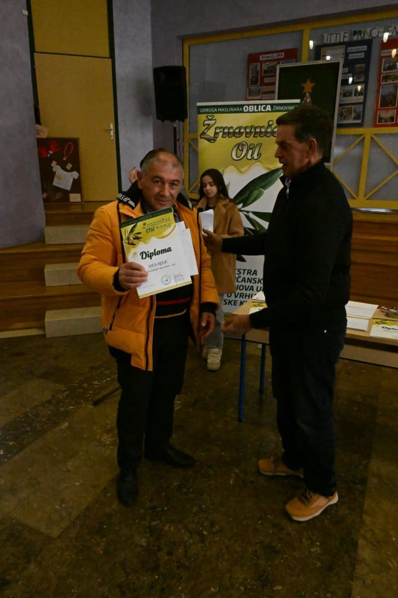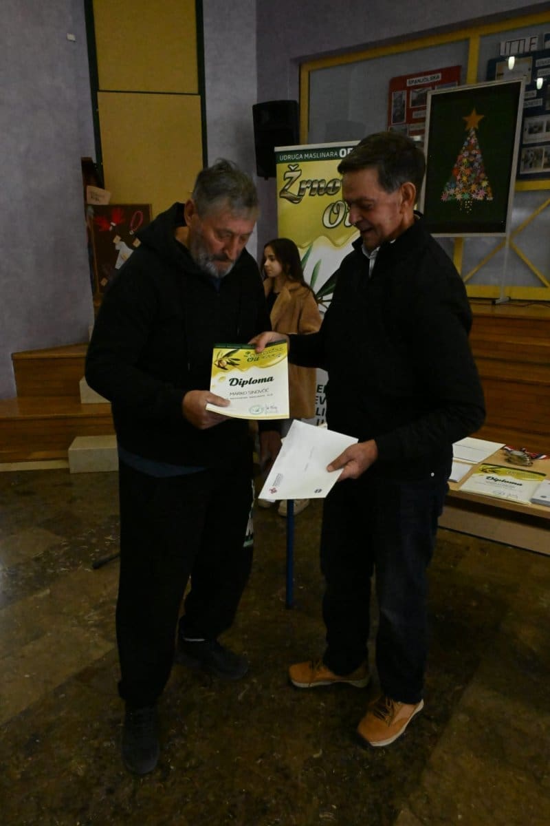 Na svečanoj dodjeli, maslinari su nagrađeni diplomama, medaljama, a vrhunac večeri bio je proglašenje prvaka manifestacije. Priznanja su dodijeljena u tri kategorije: djevičansko maslinovo ulje, ekstra djevičansko ulje s brončanim i srebrnim medaljama, te ekstra djevičansko ulje sa zlatnim medaljama.