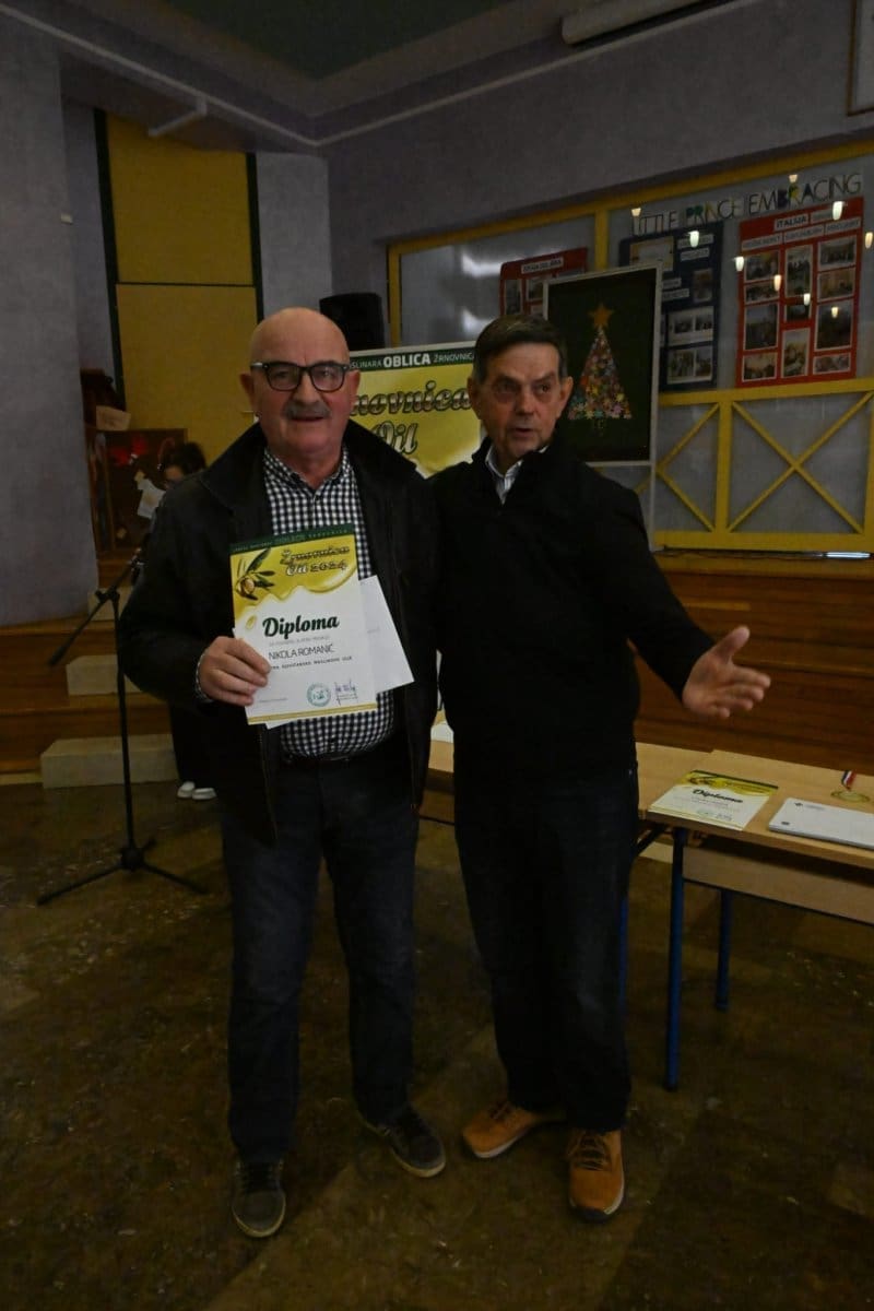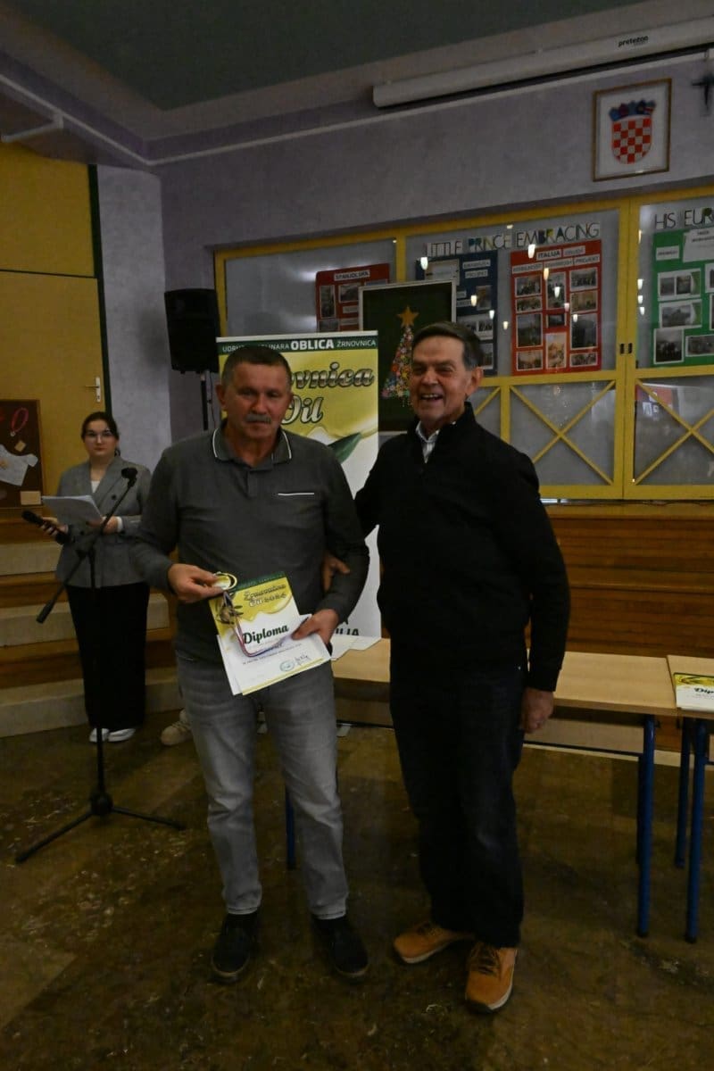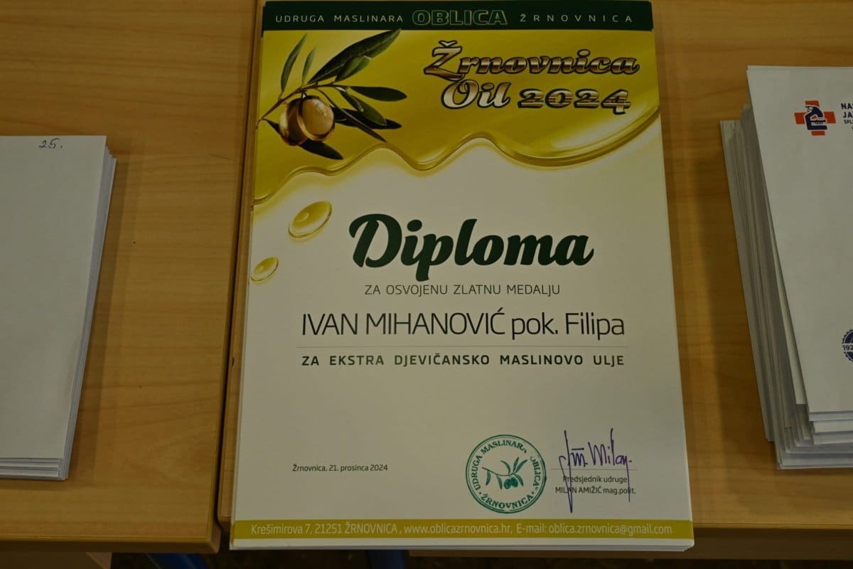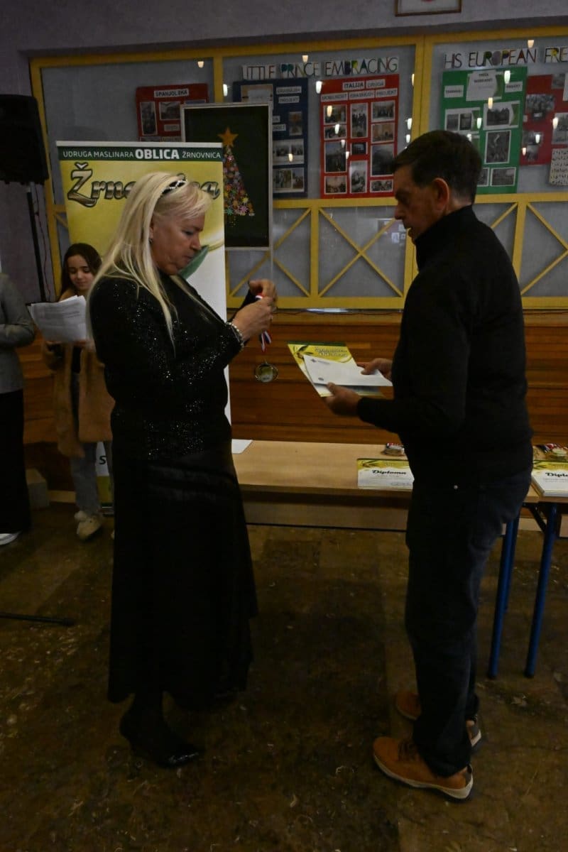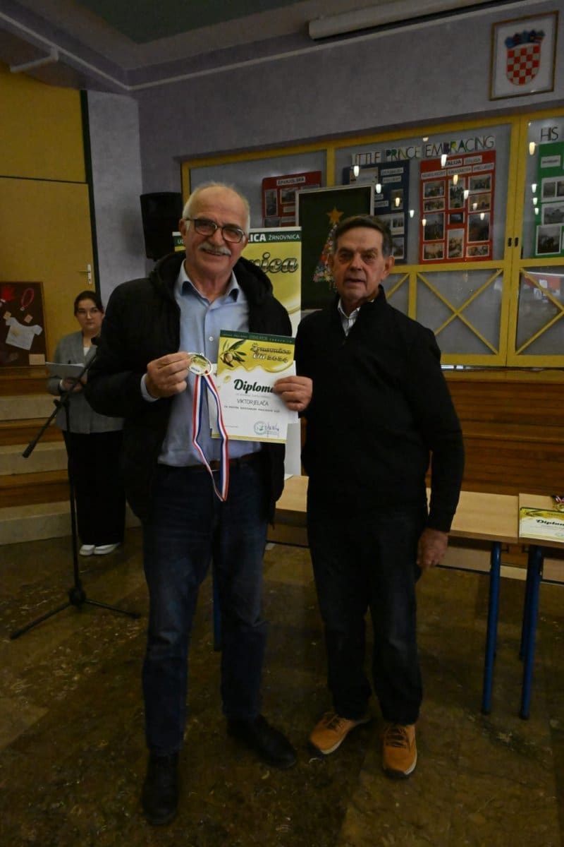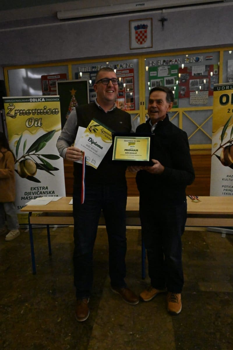 Na svečanoj dodjeli, maslinari su nagrađeni diplomama, medaljama, a vrhunac večeri bio je proglašenje prvaka manifestacije. Priznanja su dodijeljena u tri kategorije: djevičansko maslinovo ulje, ekstra djevičansko ulje s brončanim i srebrnim medaljama, te ekstra djevičansko ulje sa zlatnim medaljama.