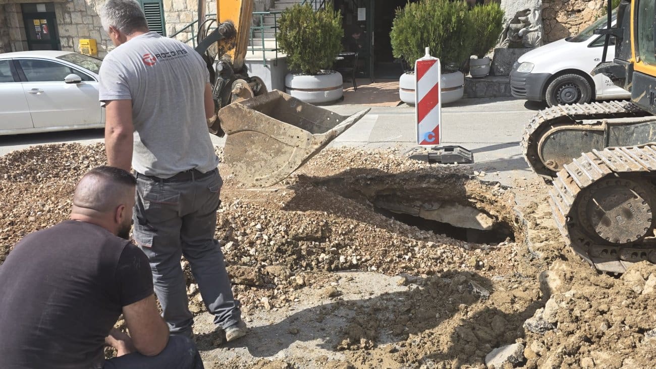 U Žrnovnici se danas otvorila velika rupa na kolniku ispred Doma, na dionici između Fontane i spomenika.