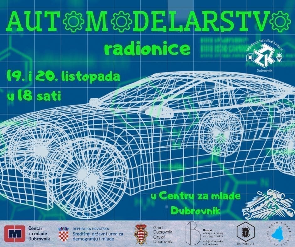 Radionice automodelarstva vodit će vanjski suradnik Zajednice tehničke kulture Grada Dubrovnika Dario Lovrinčević 19. i 20. listopada u 18 sati, u Centru za mlade Dubrovnik. Na radionicama će polaznici naučiti osnove automodelarstva uz teoretsku i praktičnu obuku i vožnju RC modela automobila. Osim toga naučit će i osnove iz više grana tehničke kulture: modelarstvo, strojarske konstrukcije, elektroniku, elektrotehniku, mehaniku i termodinamiku.