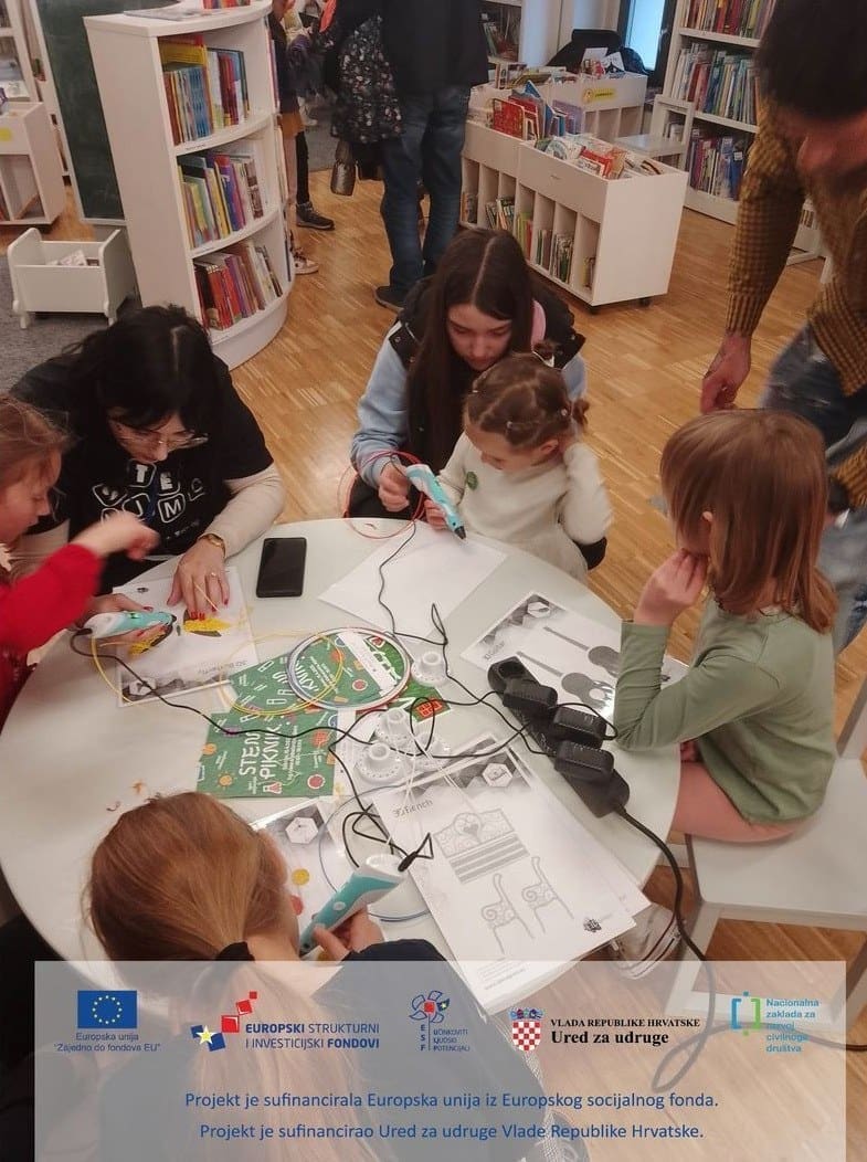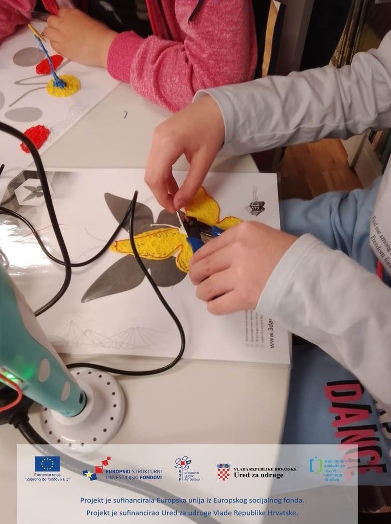 Upoznavanje s potrebnim tehničkim znanjima za rukovanje 3d olovkama, zainteresiranoj ekipi predstavile su Antonia Bekavac, vanjska suradnica ZTK grada Splita i Ella Rinčić, stručna suradnica ZTK grada Splita, uz veliku pomoć Ane, Ivana, Marte i Martina (ujedno i redovitih polaznika radionica tehničkih aktivnosti u ZTK grada Splita)!