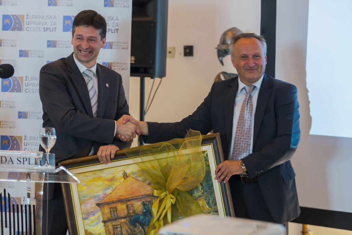 -Od ukupne mreže od oko 18.530 kilometara županijskih i lokalnih cesta ŽUC Split, razmjerno razvedenosti, površini i broju stanovnika ima i najveću mrežu od 1.740 km cesta. Kod osnutka ŽUC-a većina tih cesta bila je u lošem stanju, a imali smo i više od 300 km neasfaltiranih cesta. Danas je situacija znatno drugačija, iako nam je ostalo još 39 kilometara neasfaltiranih cesta, najveći dio ukupne cestovne mreže doživio je određeni oblik poboljšanja, rekonstrukcije ili izgradnje. Danas je cestovna mreža značajno unaprijeđena, a samo u posljednje 4 godine ŽUC Split je obnovio i izgradio više od 100 km cesta. ŽUC-evi su se u ovih 20 g. dokazali kao mali i najracionalniji upravitelji cesta s najmanjim rashodom upravljanja i najmanje zaposlenih po kilometre. Na 100 km – 1 zaposlenog, a na 1 mil. kn proračuna 950.000 ide izravno za cestu. Trebamo imati održivi sustav financiranja županijskih i lokalnih cesta u Republici Hrvatskoj, jer je sadašnja preniska razina ulaganja dalje neodrživa i već sada dovodi u pitanje urušavanje razine sigurnost prometa na tim cestama. Sadašnja sredstva za županijske i lokalne ceste iznose samo 44.000 kn po kilometru godišnje, a potrebno je najmanje dvostruko više. Zato, ne smijemo dopustiti daljnje zanemarivanje najveće mreže cesta, za čije se održavanje i rekonstrukciju sredstva nisu povećavala posljednjih 15 godina. ŽUC-evi trebaju biti temelj i jezgra svih budućih preustroja sustava jer svoju svrhu i misiju ispunjavaju od osnutka do danas. Od svog osnutka doprinose ravnomjernom razvoju svih krajeva županija na području na kojem djeluju, a glavna odlika je vrlo kvalitetna suradnja sa lokalnim zajednicama. Sustav nije savršen, ali je sasvim sigurno dobar i održiv temelj kojeg daljnjim zakonskim rješenjima treba nadograđivati. - kazao je Škorić.