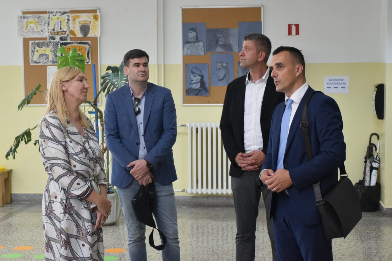 Potom je posjetio osnovne i srednje škole u gradu. Ravnateljica Osnovne škole dr. Franje Tuđmana, Marija Dujmić te ravnateljica Osnovne škole Domovinske zahvalnosti, Marija Stojanović upoznale su župana sa školskom infrastrukturom i potrebama daljnjih ulaganja i nadogradnje. Ravnatelj SS Lovre Montija, Mirko Antunović i ravnatelj SSŠ Kralja Zvonimira, Milivoj Ilić istaknuli su da je Županija već ulagala u obnovu sportske dvorane SŠ Lovre Montija koju obje škole koriste, no trenutačno je prioritet privesti kraju izradu dokumentacije energetske obnove školskih zgrada za što Šibensko-kninska županija u 2025. godini planira izdvojiti nešto više od 30 tisuća eura.