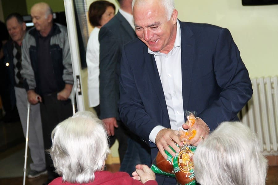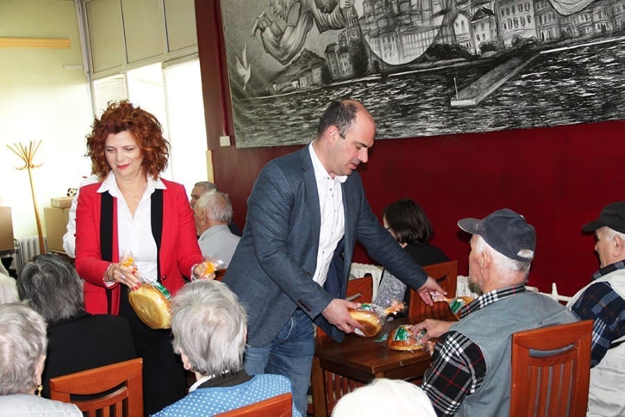Župan Goran Pauk korisnicima i djelatnicima Doma čestitao je Uskrs, zaželio im puno zdravlja i zajedno sa zamjenikom gradonačelnika prigodno im podijelio uskrsne pogače.
