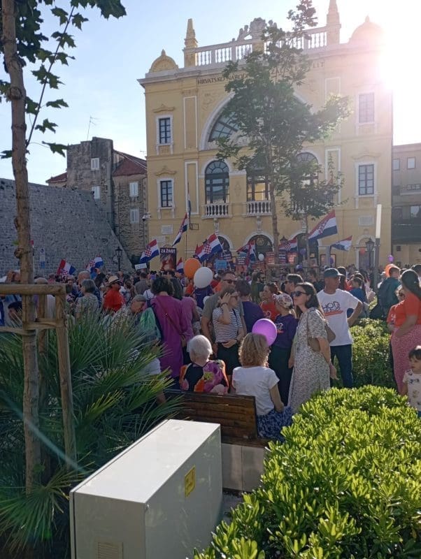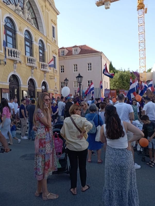 U Splitu se, na Trgu Gaje Bulata, oko 18 sati okupilo 700 ljudi, mahom djece, trudnica i umirovljenika, na ovogodišnjoj manifestaciji "Hod za život, obitelj i Hrvatsku".